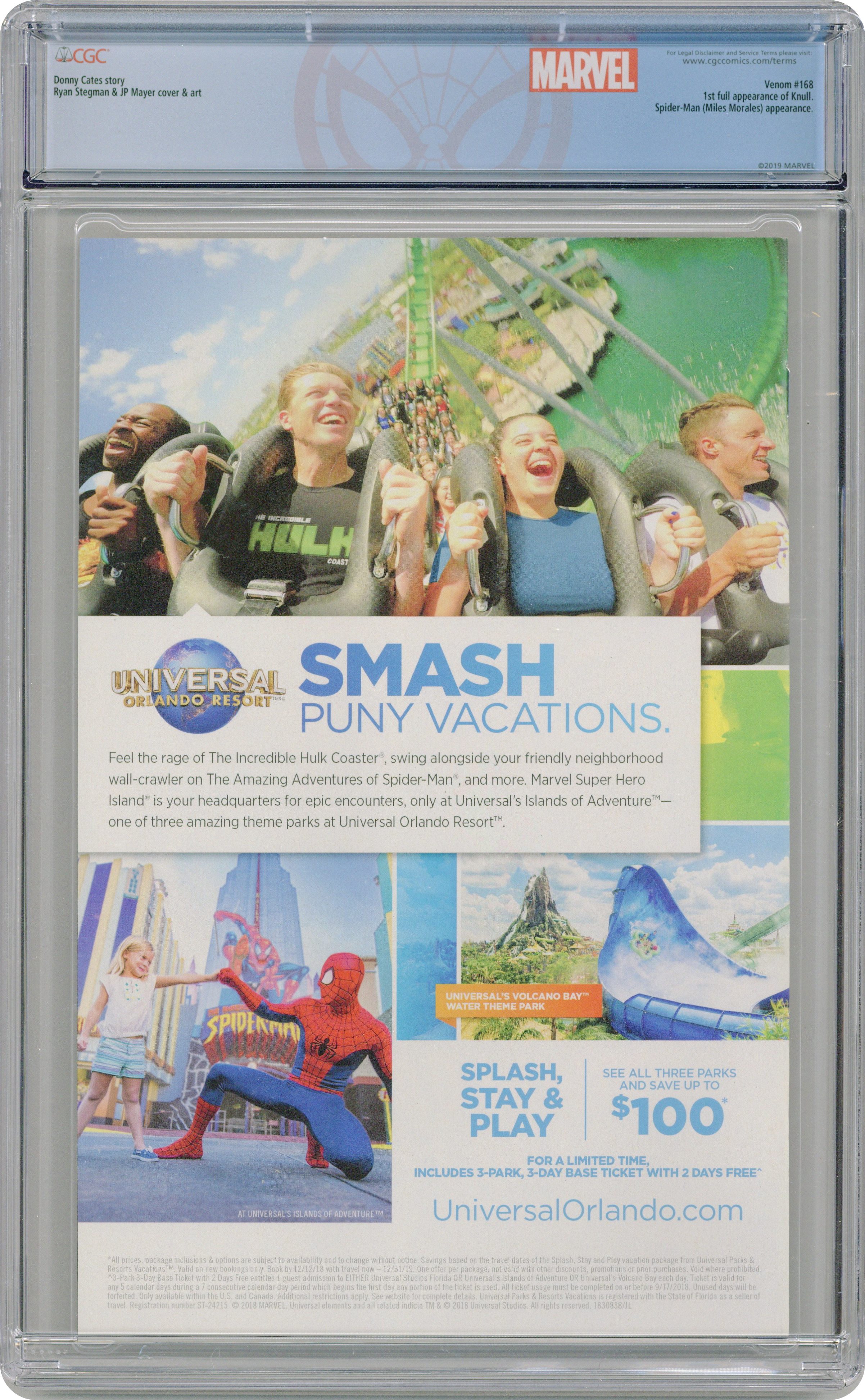 Ended Oct 16 2019 Winning Bid $86 Written by Donny Cates. Art and Cover by Ryan Stegman. Still recovering from his injuries, Eddie Brock - the Wicked Web-Slinger known as VENOM - has to defend NYC against the most powerful foe he's ever faced! The only thing standing in his way? Miles Morales…SPIDER-MAN! Though Eddie and the symbiote have no qualms with this particular web-slinger, the same can't be said for Miles' feelings about Venom… 32 pages, full color. Rated T+ Cover price $3.99. Grade: CGC 9.8 explanation of grade Condition: Used (collectible)