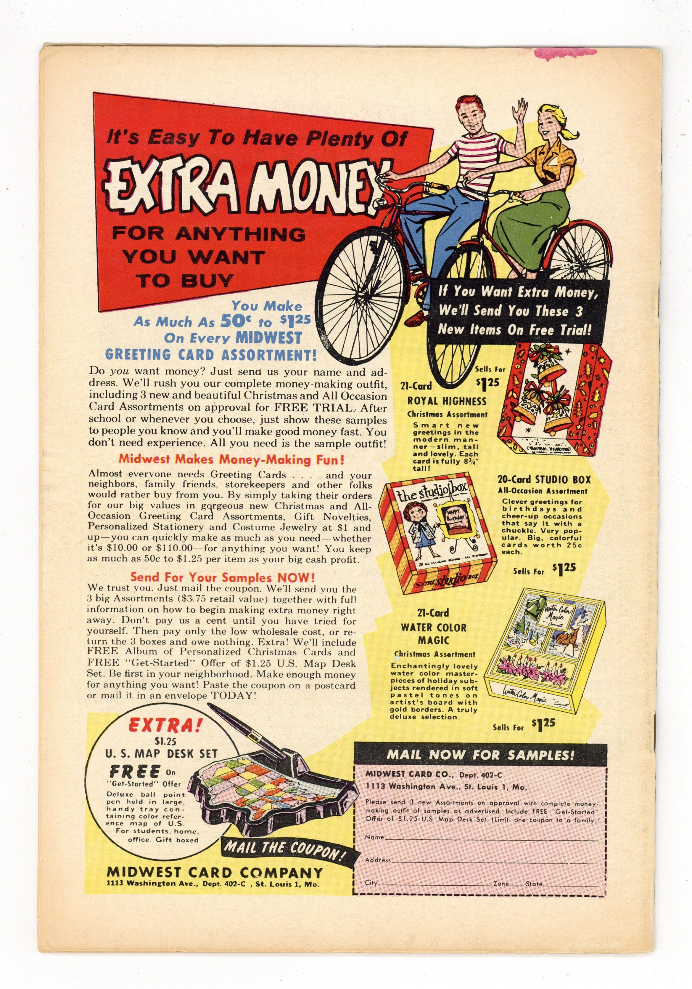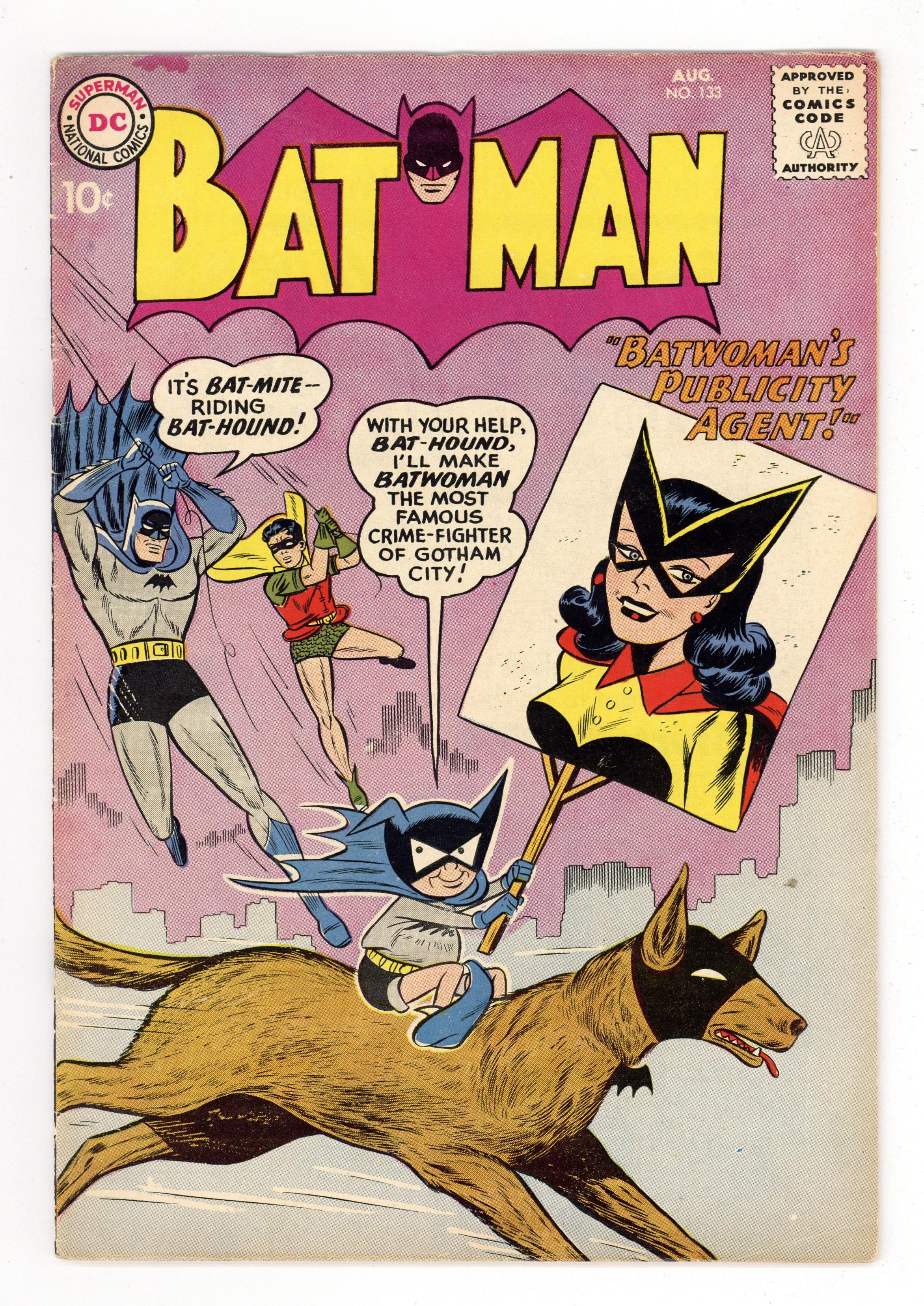 Ended May 6 2020 Winning Bid $155 1st appearance of Bat-Mite in Batman comics and his 3rd appearance anywhere in "Batwoman's Publicity Agent!" Cover by Sheldon Moldoff. "Crimes of the Kite-Man," script by Bill Finger, pencils by Dick Sprang, inks by Charles Paris; The Caped Crusaders must battle an ingenious criminal who uses kites to commit his crimes! Lend a Friendly Hand! public service announcement with Superman, pencils by Curt Swan, inks by Stan Kaye. "The Voyage of the S.S. Batman," script by Bill Finger, art by Sheldon Moldoff; After building a mock Bat-Cave on board a ship and allowing the public in, several crooks break in to it, attempting to steal a trophy on display which has part of a map inside it that will lead the criminals to some stolen loot. Half-page Casey the Cop story by Henry Boltinoff. One-page Warden Willis story by Henry Boltinoff. "Batwoman's Publicity Agent," script by Bill Finger, art by Sheldon Moldoff (as Bob Kane); Batwoman and Bat-Mite team up to fight crime and the Dynamic Duo do not know what to make of it; The truth, that Bat-Mite is in love with the female crime fighter, is the reason that the imp from another dimension being in town. 36 Pages, Full Color. Cover price $0.10. Grade: VG/FN 5.0 explanation of grade Condition: Used (collectible)