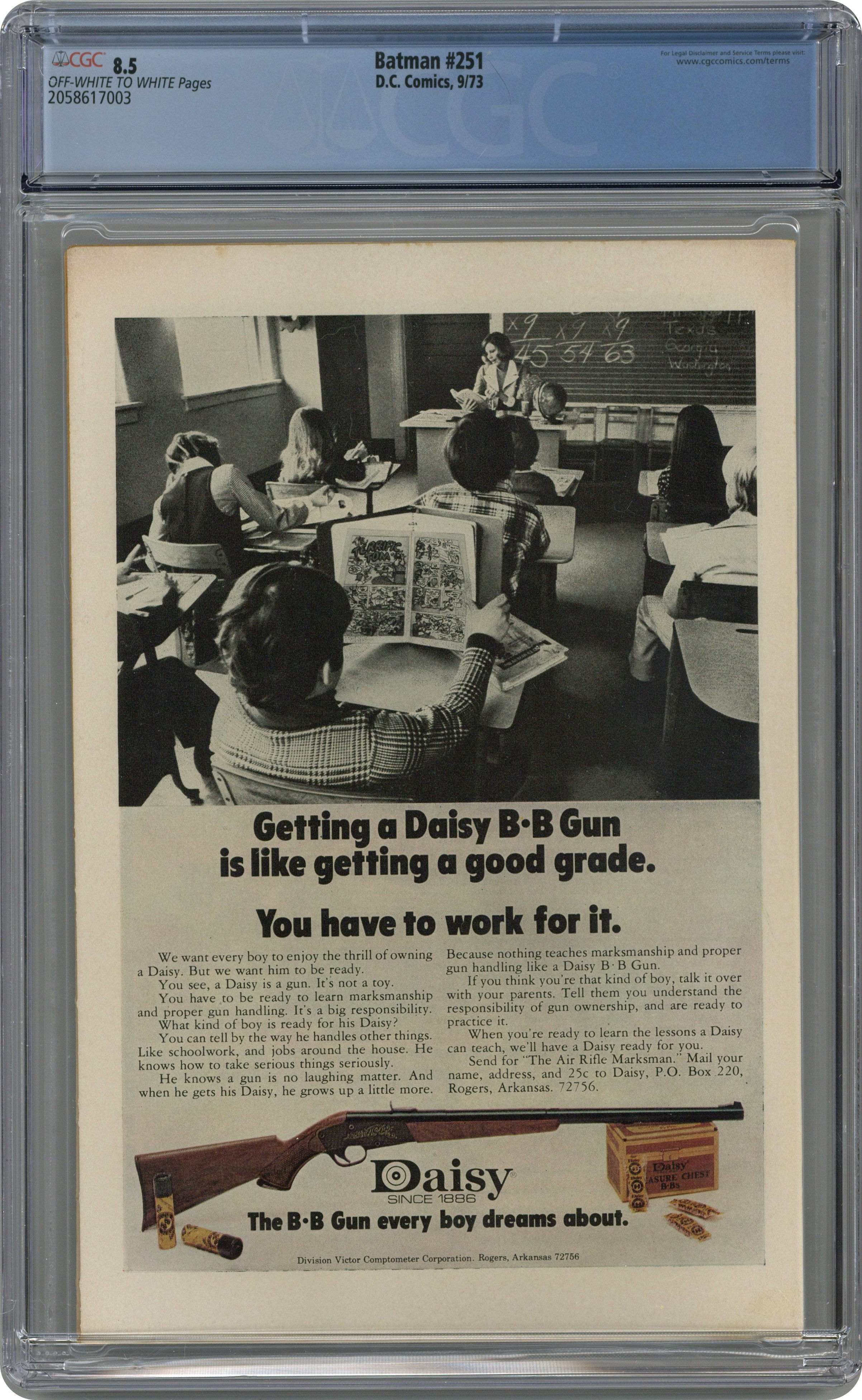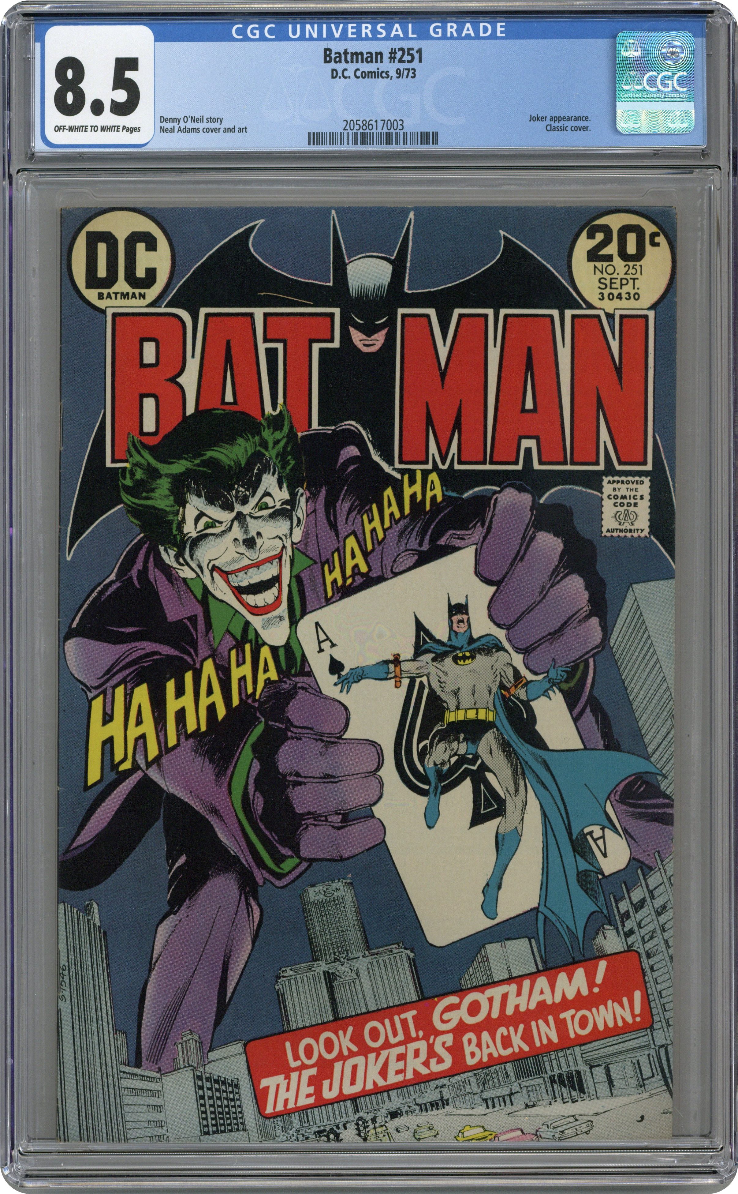 Ended Oct 16 2019 Winning Bid $561 Cover art by Neal Adams. "The Joker's Five-Way Revenge!", script by Denny O'Neil, art by Neal Adams; The Joker has set himself free from the Mental Hospital for the Criminally Insane Batman had him incarcerated in, and he is out for blood; Before he was sent away, knowing that one member of his previous gang had ratted him out to the police, he had vowed to murder all five of them; And only the Batman is capable of stopping him; Despite Batman's best efforts, the Joker is able to finish off nearly all of his hit list; Batman is only alerted after the first murder, when a grinning corpse is found in the mud just outside of Gotham City, and he goes to each of the former members of the Joker's gang individually to try to protect them. Plop! comic book ad. Champion Sports comic book ad. 36 Pages, Full Color. Cover price $0.20. Grade: CGC 8.5 explanation of grade Condition: Used (collectible)
