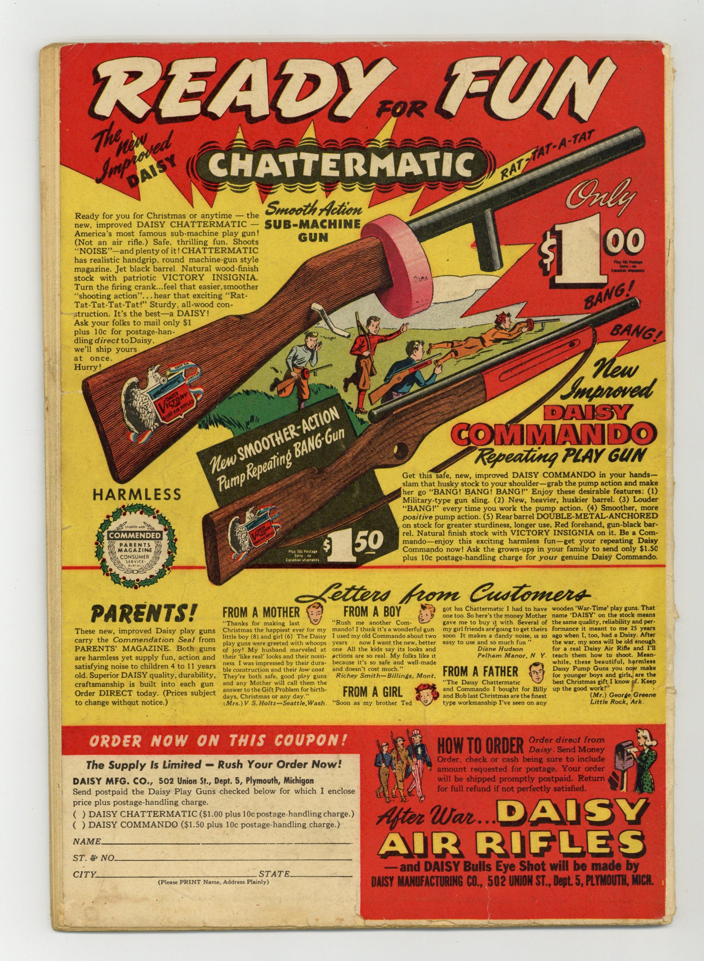 Ended May 19 2020 Winning Bid $236 Cover art by Irwin Hasen. The Case of the Crooked Crook starring Green Lantern, script by Alfred Bester, art by Martin Nodell; Green Lantern faces a nefarious plot by the Lisper Gang to use a respectable employment agency as a cover for their racket. Mutt and Jeff strips by Al Smith [signed as Bud Fisher]. The Smile That Wins starring Green Lantern, script by Alfred Bester, art by Martin Nodell; Alan visits the doctor foe a stomach ache and he is told the pain is psycho-somatic; The cure: smile!; But when Alan smiles, it has a very strange effect on people: it makes them confess to crimes they have committed! The Cave Kid Goes To Town starring Green Lantern, script by Henry Kuttner, art by Martin Nodell; While on vacation, Alan and Doiby discover what appears to be a primitive boy living in a cave; G.L. attempts to discover just who the boy really is and the answer is quite unexpected!; story takes place in Gotham. 52 pgs. $0.10. Cover price $0.10. Grade: VG 4.0 explanation of grade Condition: Used (collectible)