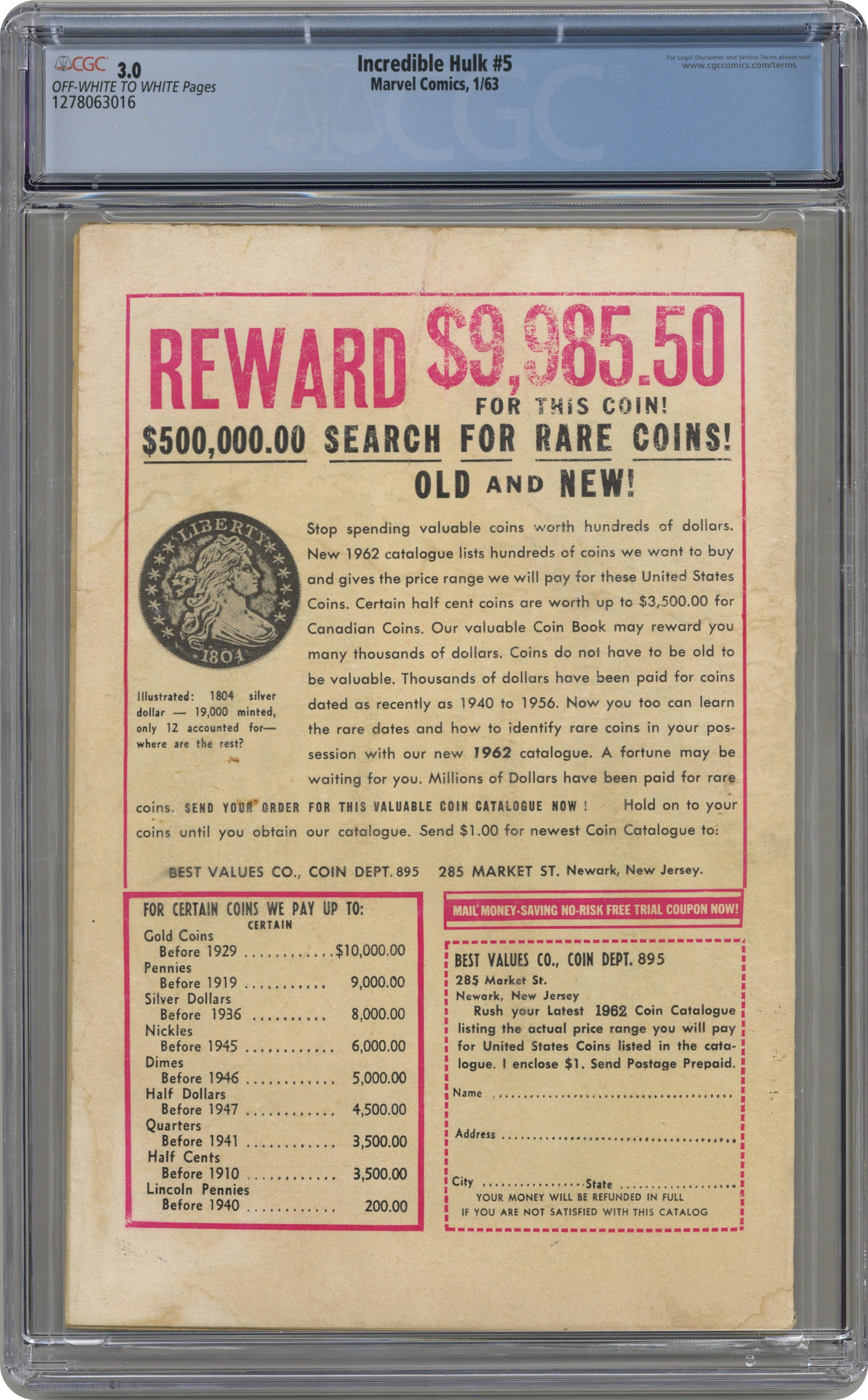 Incredible Hulk (1962-1999 1st Series) 5 CGC 3.0