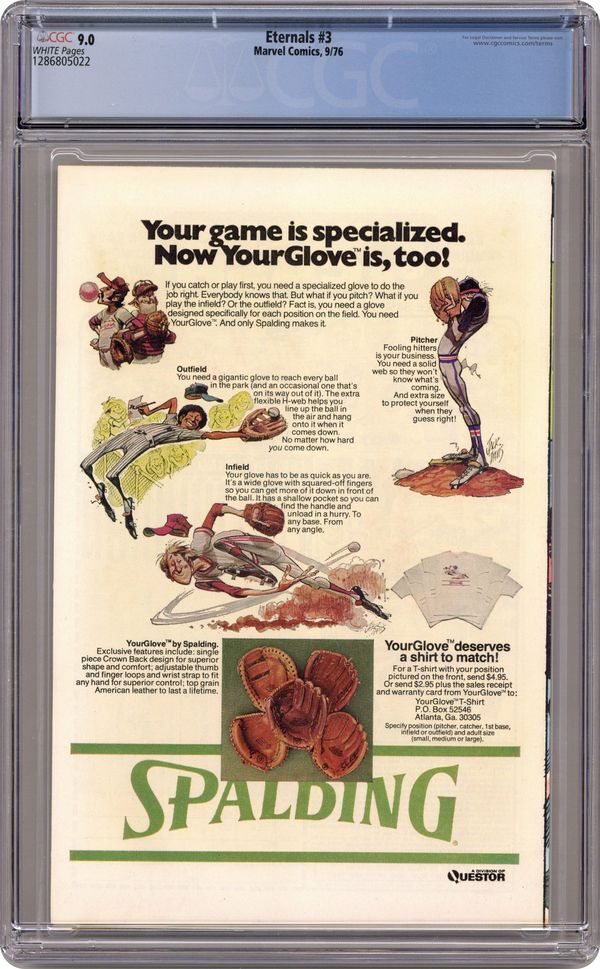 Ended May 6 2020 Winning Bid $53 "The Devil in New York!" Written by Jack Kirby. Pencils by Jack Kirby. Inks by John Verpoorten. The hidden chapters in the history of man are quickly being revealed. The Celestials have returned! Untouched for thousand years, a large crypt in an Incan ruin has discharged a living flight crew. As Margo's head spins from all the fantastic sights she has seen, sights no mortal before has seen, Ikaris introduces her to the fabulous Eternal beauty known as Sersi. Meanwhile, if the gods haves returned, can the monsters be far behind. The beastly Deviants, the sworn enemy of the Eternals and mankind, prepare to attack! Notes: 1st appearance of Sersi. Letter to the editor from comics writer Ralph Macchio. Cover price $0.30. Grade: CGC 9.0 explanation of grade Condition: Used (collectible)
