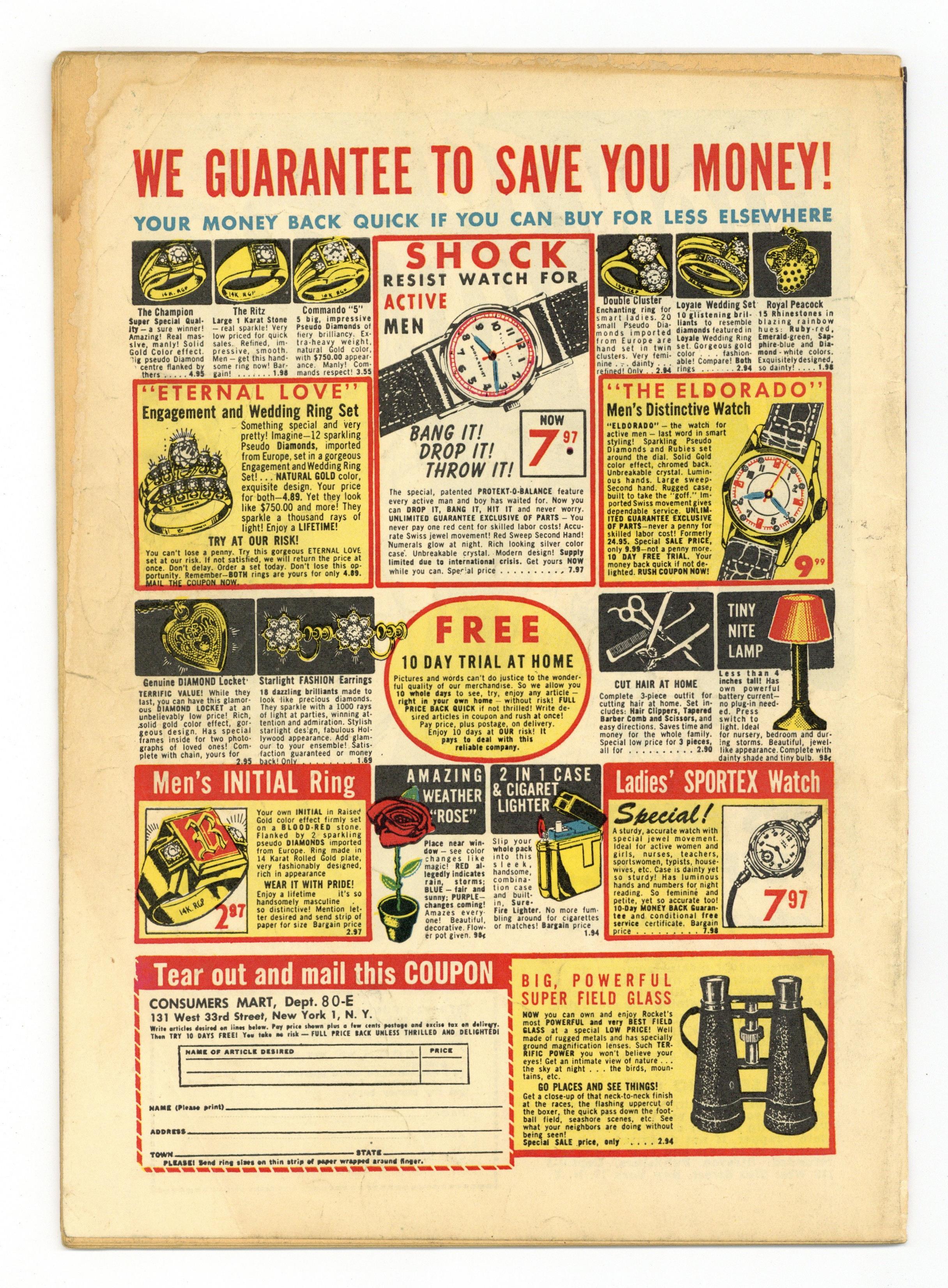Ended May 4 2020 Winning Bid $330 (A-1 Comics #34) Cover by Frank Frazetta. Stories by Gardner Fox. Art by Dick Ayers. Sometimes listed as A1 Comics (1944 Life's Romances) #34. Adventures of the original Ghost Rider, a Western marshal who uses special effects to make outlaws think he's an otherworldly avenger. Outlaws dress as ghosts and hide out in a graveyard, but GR out-haunts them; A dying man's last words warn Ghost Rider of the Looking-Glass Killer; A woman sought by killers puts Rex on the trail of the Ghost Train full of dead men. Cool creepy cover by Frazetta offers a hint of what was to come. The Greedy Ghosts of Boot Hill!; The Looking-Glass Killer!; The Ghost Train of Golden Gorge!; Black Magic! 32 pages, Full Color. Cover price $0.10. Grade: GD 2.0 explanation of grade Condition: Used (collectible)