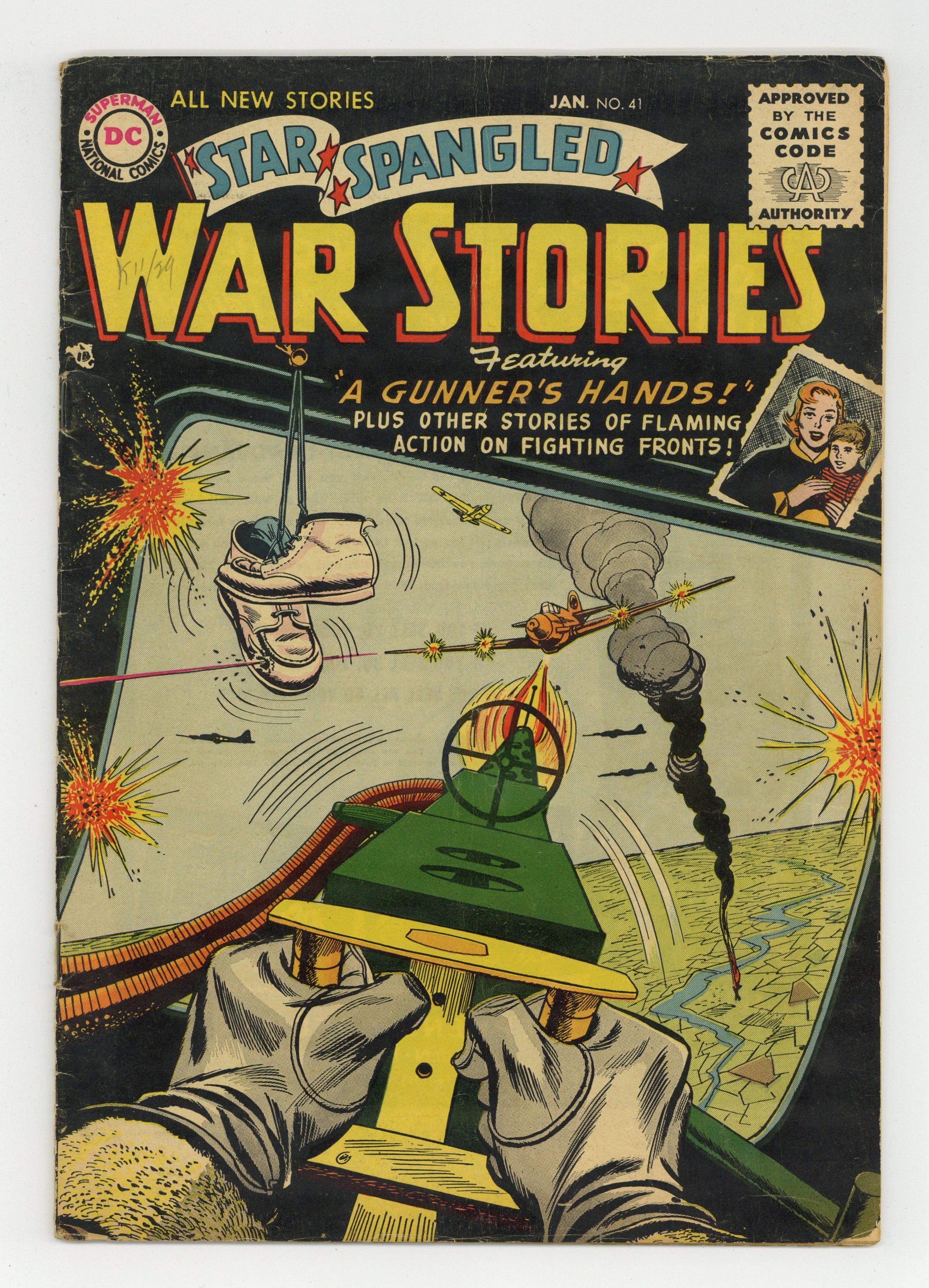 Ended May 6 2020 Winning Bid $55 Cover art by Irv Novick. A Gunner's Hands, script by Robert Kanigher, art by Irv Novick. Combat Cabbie, script by Dave Wood, pencils by Jerry Grandenetti, inks by Joe Giella. The Tank that Wasn't There, script by France Herron, pencils by Mort Drucker, inks by Bernard Sachs. Parachute--Do Not Open, script by David V. Reed, pencils by Ross Andru, inks by Mike Esposito. 36 Pages, Full Color. Cover price $0.10. Grade: VG 4.0 explanation of grade Condition: Used (collectible)