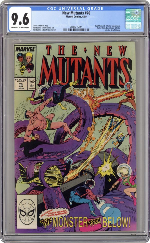 Ended May 26 2020 Winning Bid $30 Atlantis Attacks tie-in. Cover pencils by Rich Buckler, inks by Bob McLeod. Splash!, script by Louise Simonson, pencils by Rich Buckler, inks by Tom Palmer; The New Mutants, in search of a home, go to X-Factor's Ship; the X-Terminators find a horn at the bottom of the ocean and blow it; Ship is attacked by an octopus; Sub-Mariner and New Mutants help restore order; X-Factor invites the New Mutants to stay. 36 pgs. $1.00. Cover price $1.00. Grade: CGC 9.6 explanation of grade Condition: Used (collectible)