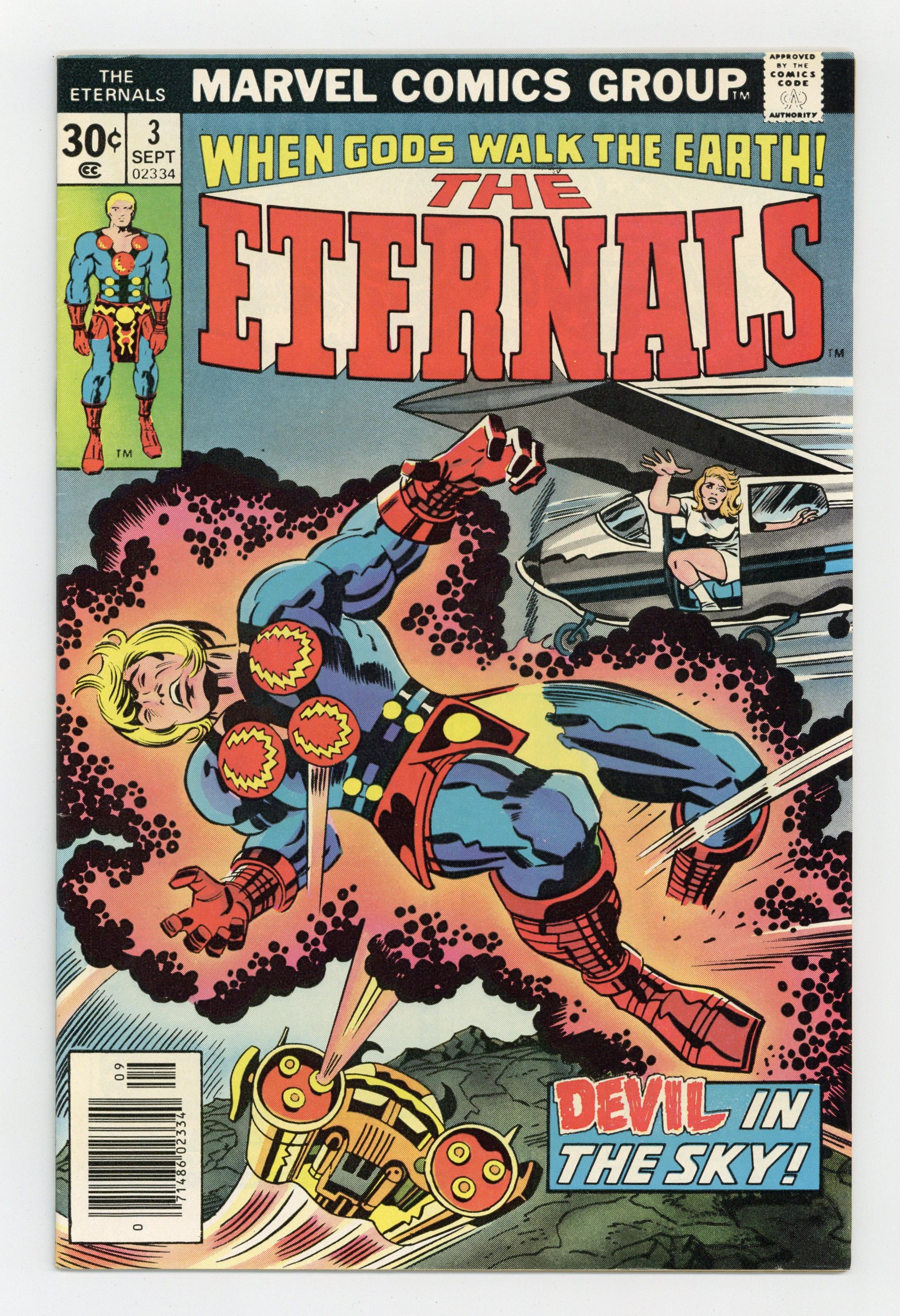Ended May 19 2020 Winning Bid $32 "The Devil in New York!" Written by Jack Kirby. Pencils by Jack Kirby. Inks by John Verpoorten. The hidden chapters in the history of man are quickly being revealed. The Celestials have returned! Untouched for thousand years, a large crypt in an Incan ruin has discharged a living flight crew. As Margo's head spins from all the fantastic sights she has seen, sights no mortal before has seen, Ikaris introduces her to the fabulous Eternal beauty known as Sersi. Meanwhile, if the gods haves returned, can the monsters be far behind. The beastly Deviants, the sworn enemy of the Eternals and mankind, prepare to attack! Notes: 1st appearance of Sersi. Letter to the editor from comics writer Ralph Macchio. Cover price $0.30. Grade: FN 6.0 explanation of grade Condition: Used (collectible)