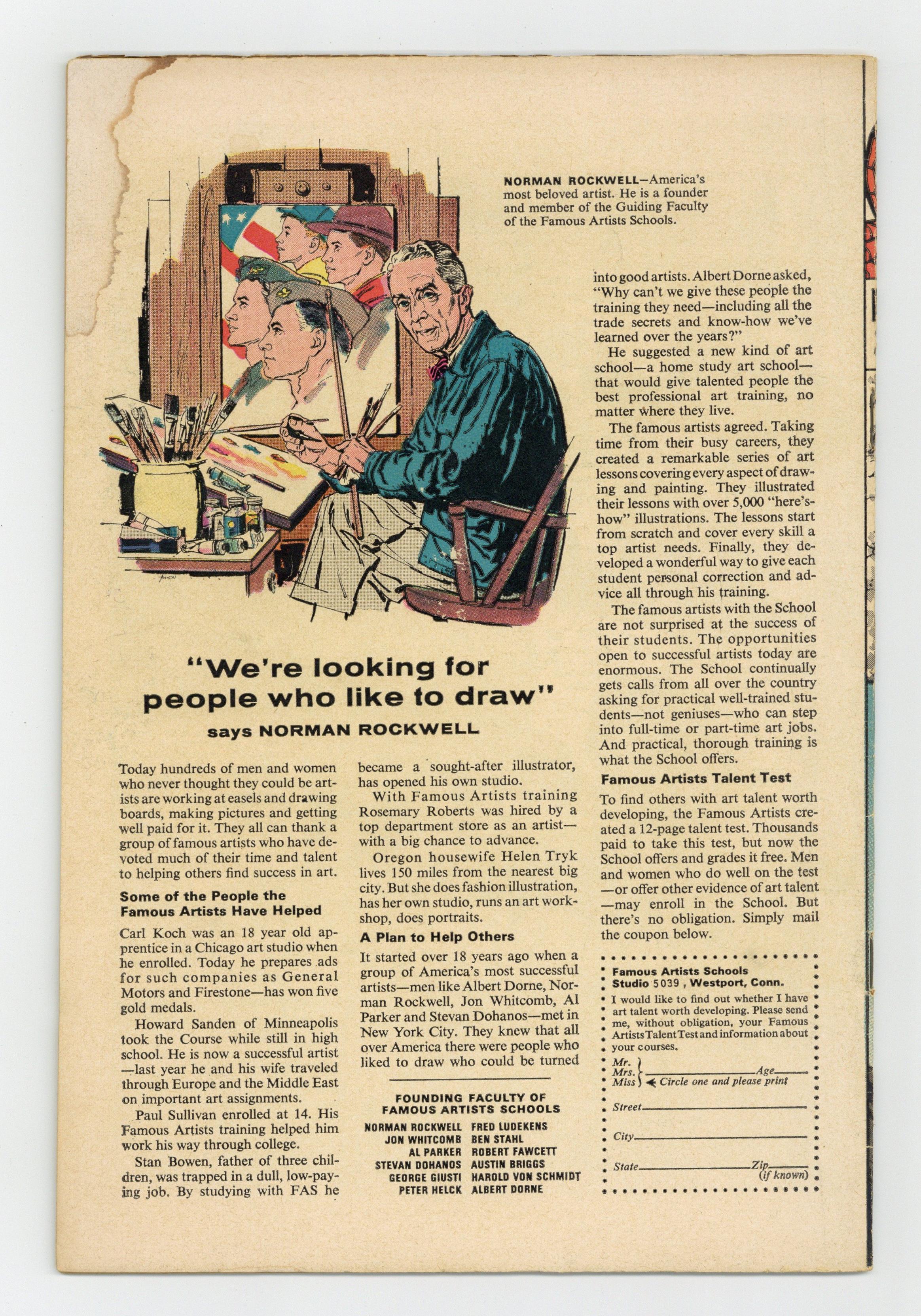 Ended May 15 2020 Winning Bid $145 Cover art by John Romita. How Green Was My Goblin!, script by Stan Lee, pencils by John Romita (who begins as regular penciler), inks by Mike Esposito [as Mickey Demeo] and John Romita (touch-ups); Peter heads to the doctor with the sniffles and learns that Aunt May's health is very fragile; Spidey is roped into tangling with a bunch of goons who zap him with a mysterious gas; Not realizing that the gas has weakened his spider sense, he changes into Peter Parker under the watchful gaze of the Green Goblin; The Goblin confronts Spidey outside of his home and captures him as Peter is worried that Aunt May might be overcome by the commotion; Trussed up in the Goblin's lair, Peter is shocked when the Goblin takes off his mask and reveals himself to be Norman Osborn. Reprinted in Marvel Tales # 178. According to Les Daniels in "Marvel: Five Fabulous Decades of the World's Greatest Comics" (Abrams, 1991), artist Steve Ditko resigned because of a disagreement over the Goblin's identity. Ditko wanted it to be someone anonymous--a new, unknown guy; Lee wanted it to be a familiar character that would startle readers. 36 pgs. $0.12. Cover price $0.12. Grade: VG- 3.5 explanation of grade Condition: Used (collectible)