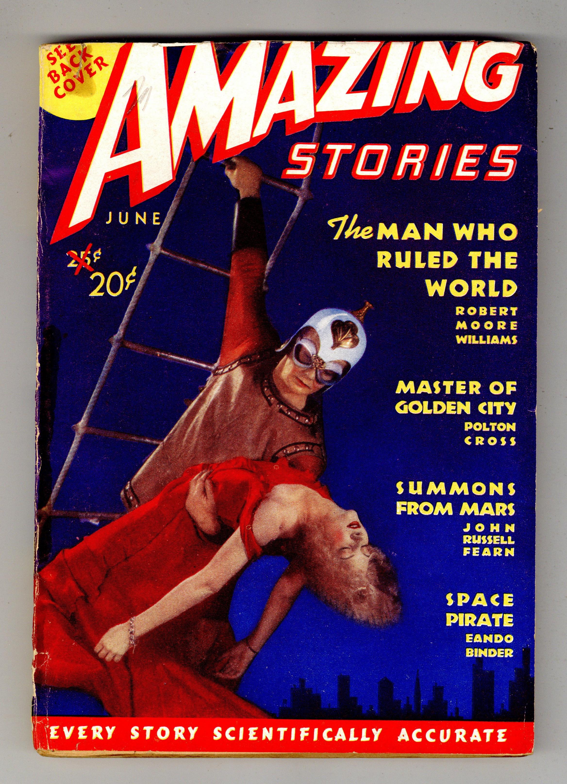Ended May 21 2020 Winning Bid $21 Volume 12, Issue 3 - June, 1938. Photo cover of spaceman carrying unconscious woman up rope ladder. Science fiction stories by Robert Moore Williams, Ross Rocklynne, Polton Cross, Charles R. Tanner, John Russell Fearn, Eando Binder, and Lt. John Pease. 7" x 10".; black and white with color cover; 146 newsprint pages. Cover price $0.20. Grade: VG 4.0 explanation of grade Condition: Used (collectible)