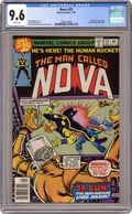 Ended May 14 2020 Winning Bid $33 Guest-starring the Comet. Story by Marv Wolfman. Art by Carmine Infantino and M. Hands. Plus, a special 2 page interlude by Gene Colan and Tom Palmer (Tomb of Dracula). Nova and the Comet get thrashed by the nigh unstoppable Diamondhead. This leaves the Human Rocket vulnerable and at the mercy of Dracula's old nemesis Dr. Sun. Plus, witness the return of the enigmatic Sphinx. 32 pages. Cover price $0.35. Grade: CGC 9.6 explanation of grade Condition: Used (collectible)