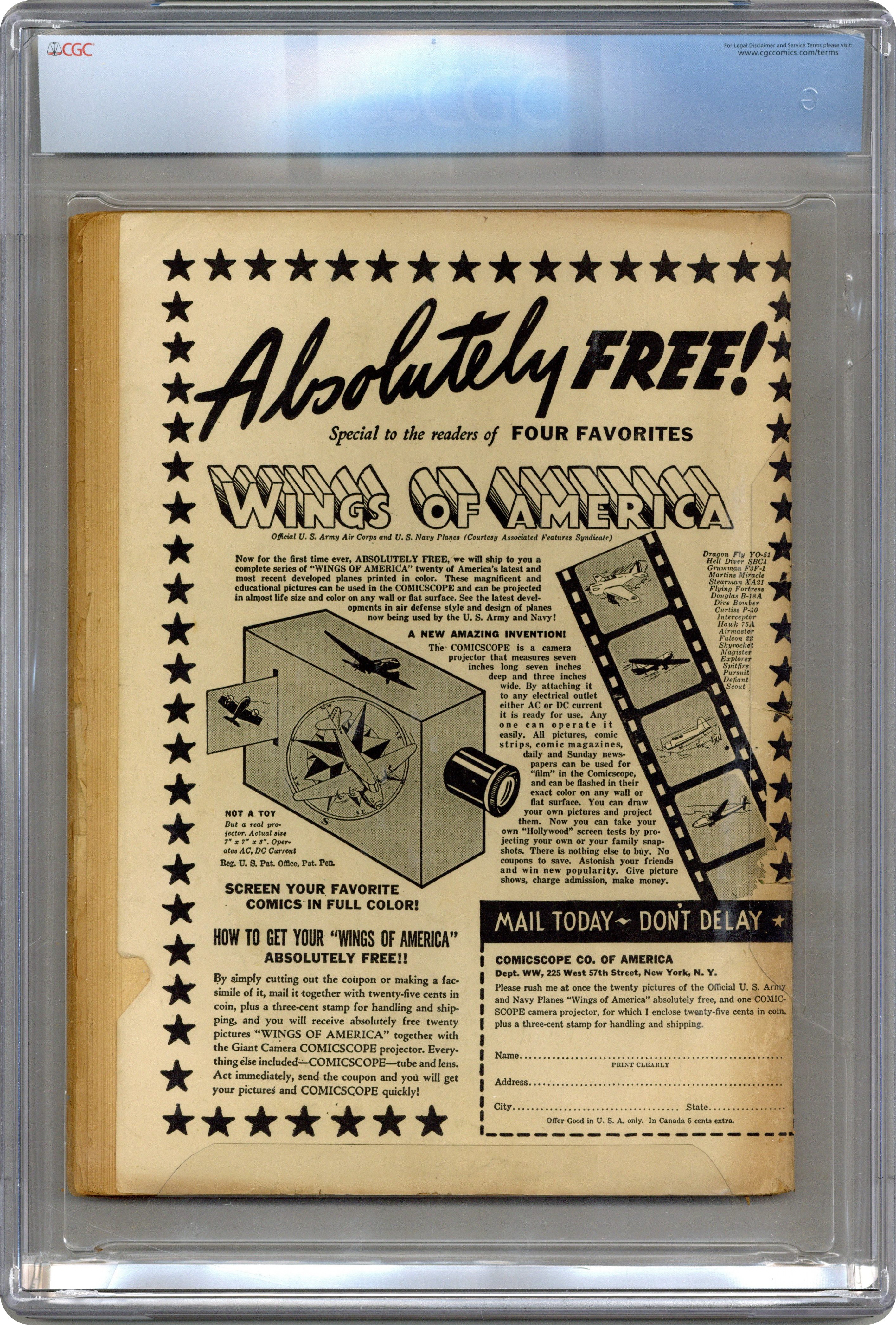Published Sep 1941 by Ace Comics.Four Favorites (1941) 1 CGC 2.5
