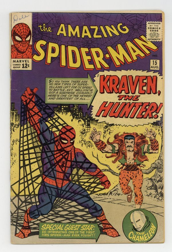 Ended May 7 2020 Winning Bid $406 Cover art by Steve Ditko. First appearance of Kraven the Hunter in Kraven the Hunter!, script by Stan Lee, art by Steve Ditko; The Chameleon hires his old friend Kraven the Hunter to hunt down Spider-Man. Reprinted in Marvel Tales # 10 and 153. 36 pgs. $0.12. Cover price $0.12. Grade: GD/VG 3.0 explanation of grade Condition: Used (collectible)