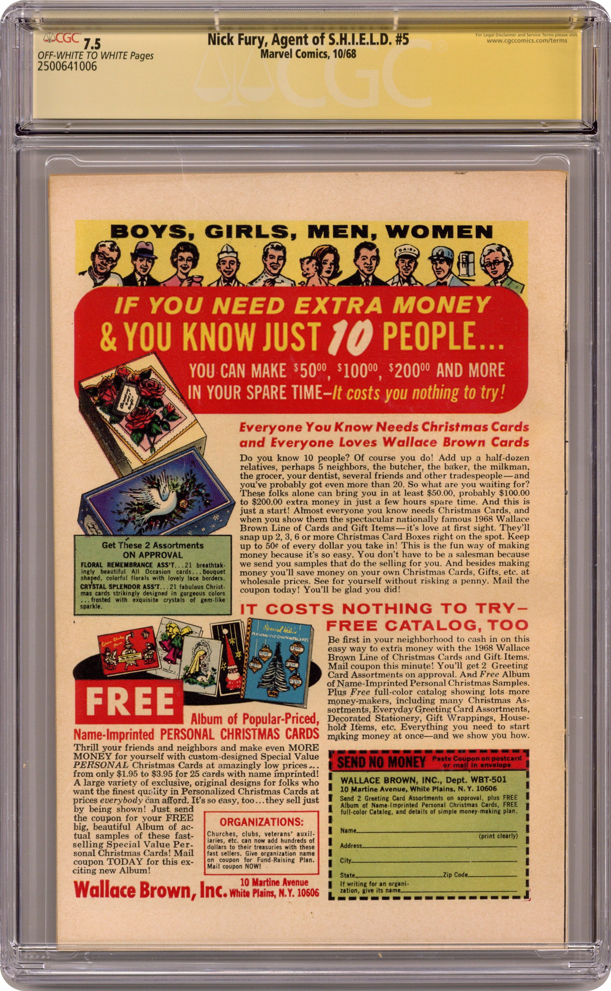 Nick Fury Agent of SHIELD (1968 1st Series) 5 CGC 7.5 SS