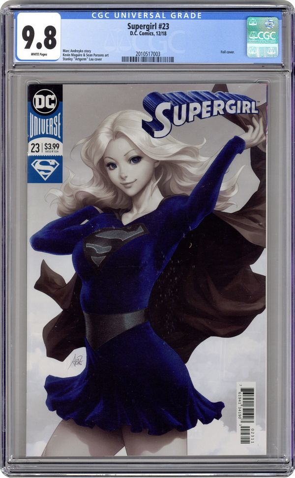 Ended May 7 2020 Winning Bid $59 The Killers of Krypton: Part 3 - Written by Marc Andreyko. Art by Kevin Maguire, Sean Parsons and Wade Von Grawbadger. Cover by Stanley Lau. Supergirl's cosmic quest continues as she searches the galaxy for the truth about Rogol Zaar's connection to Krypton's destruction-and if there are any other culprits to be brought to justice. The library police are hot on Kara's trail after she breaks into the Green Lantern database on Mogo, but she's short on credits to pay the fine. 32 pages, full color. Rated T Cover price $3.99. Grade: CGC 9.8 explanation of grade Condition: Used (collectible)