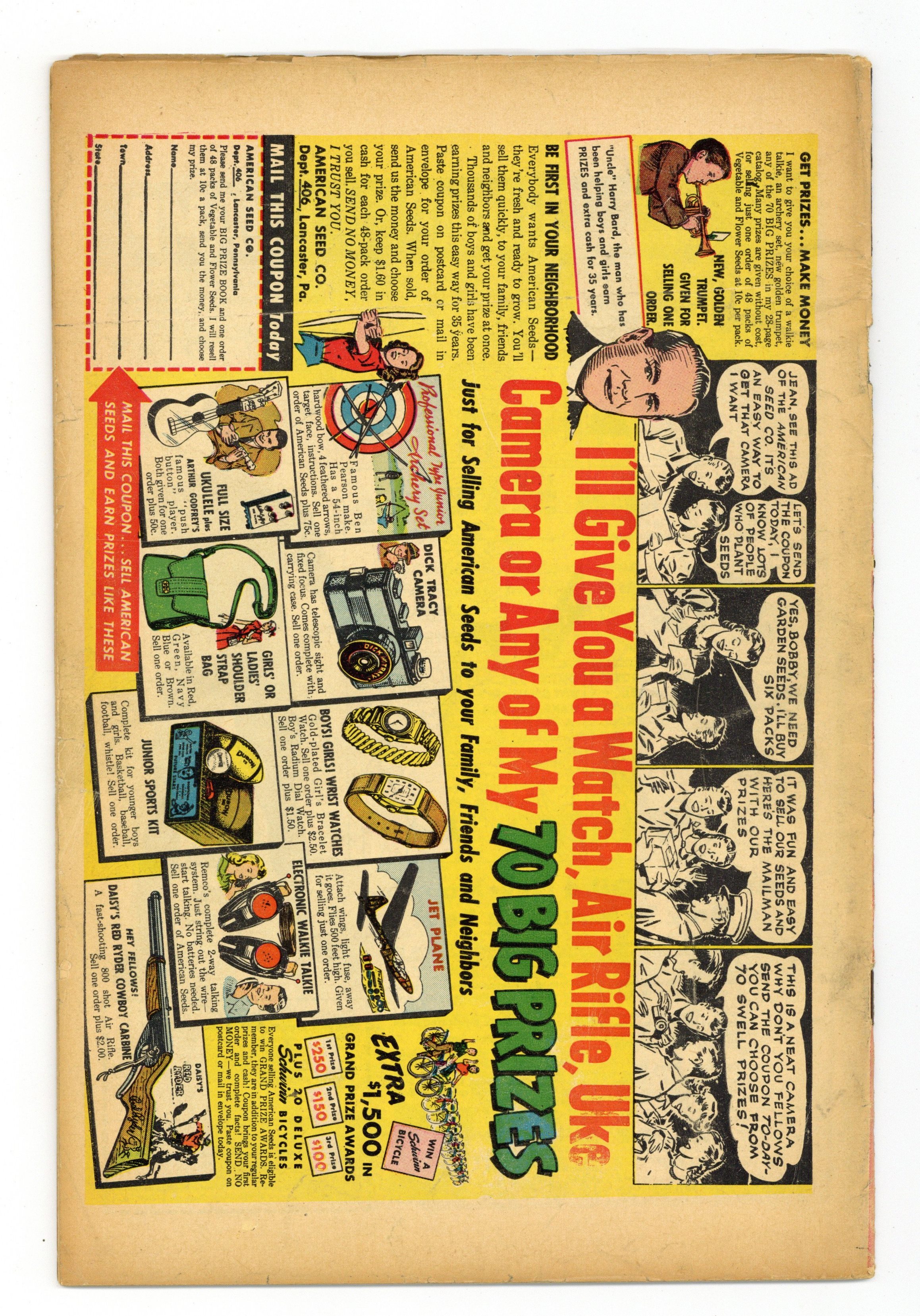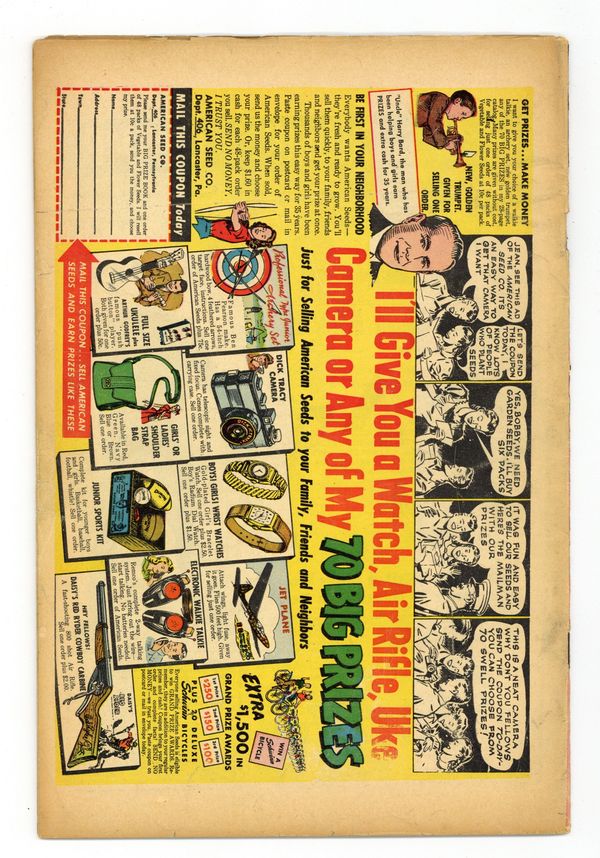 Ended May 7 2020 Winning Bid $86 The Man Who Wasn't, art by Mort Lawrence; When a scientist invents life in a test tube he is erased from existence by God. Haunted House text story. The Dwarf of Horrormoor; A duke plays a trick on his dwarf jester by replacing all of the furniture in his room with smaller versions so as to make the dwarf appear normal size when he wakes. The Thieves, art by Matt Fox; When Earth is warned that the aliens heading for them are thieves they have no idea that their intent is to steal the sun. The Invaders!, pencils by Ross Andru. Half-Human!, art by Robert Q. Sale; The manufacturer of androids unknowingly marries one and only finds out when he deploys gas to dissolve a group of rebellious androids that plot to depose humanity. 36 pgs. Cover price $0.10. Grade: GD/VG 3.0 explanation of grade Condition: Used (collectible)