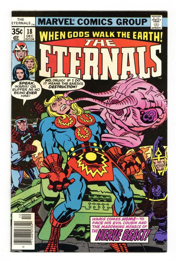 "To Kill a Space God!" Written by Jack Kirby. Pencils by Jack Kirby. Inks by Mike Royer. Ikaris comes home to face his evil cousin and the maddening menace of the Nerve Beast! Note: First appearance of Tiamut the Communicator (The Dreaming Celestial) and the Celestial Ziran the Tester. Cover price $0.35. Grade: FN/VF 7.0 explanation of grade Condition: Used (collectible)