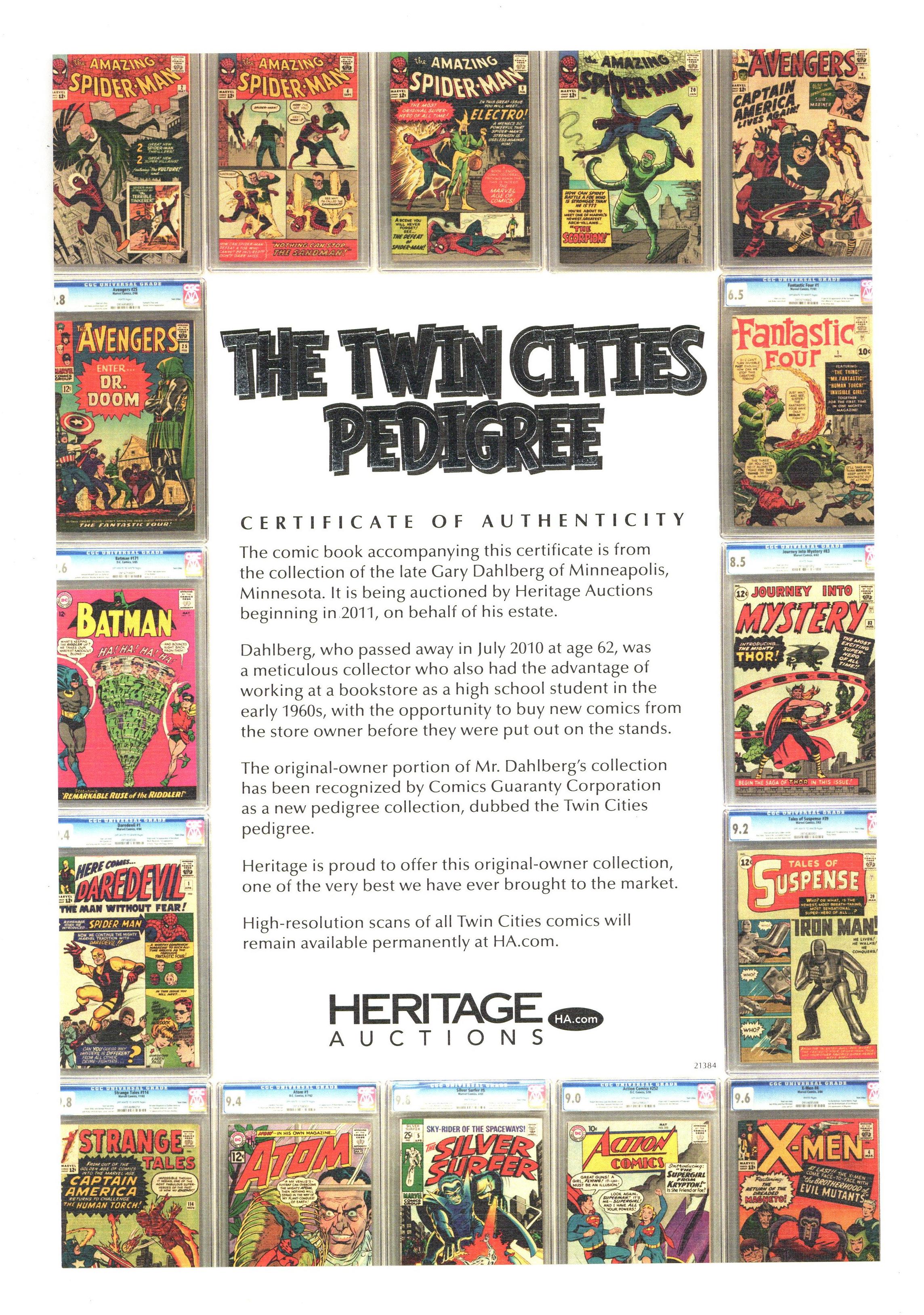 Twin Cities. Includes COA from Heritage Auctions.