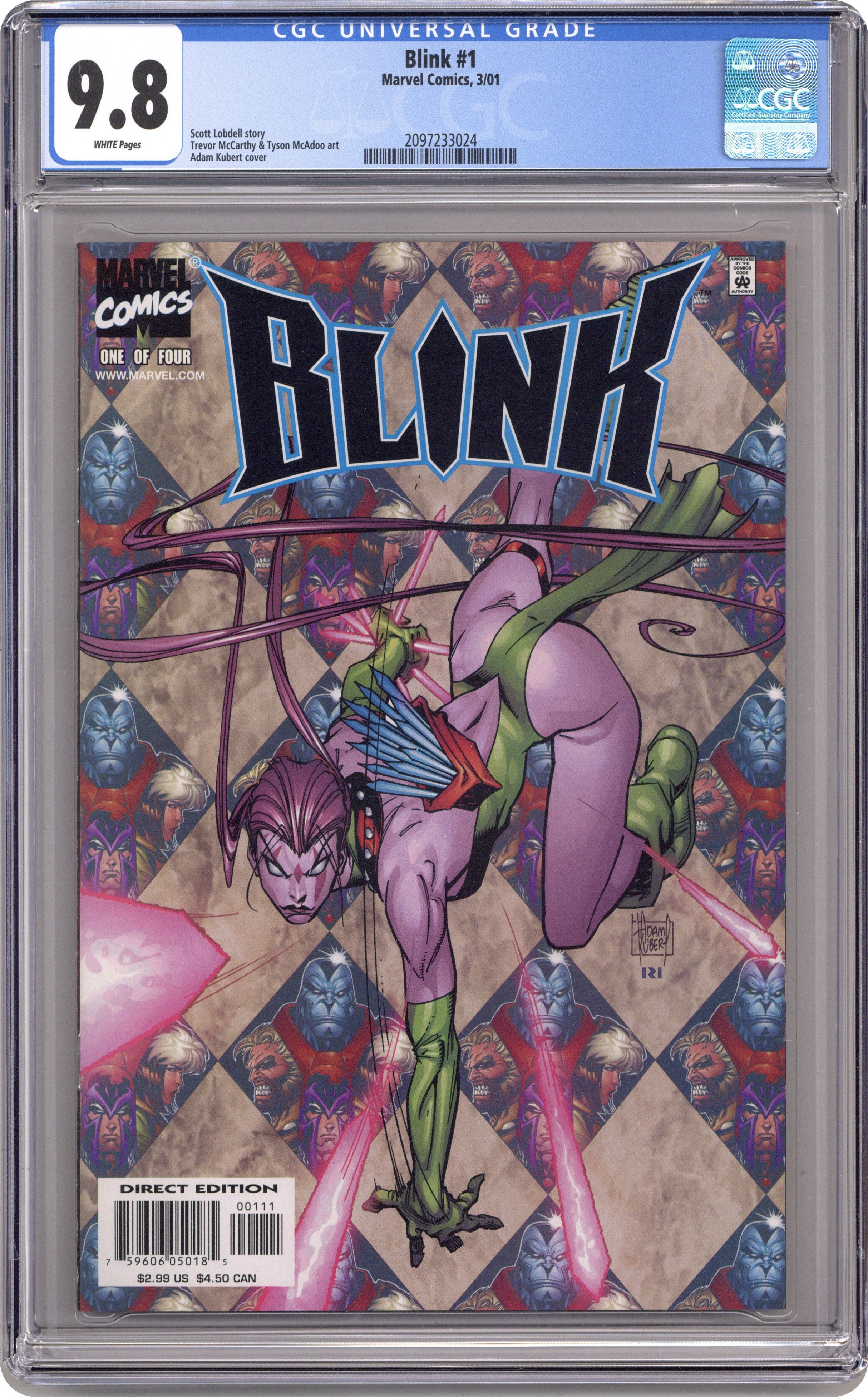 Ended Jun 1 2020 Winning Bid $43 cover by adam kubert scott lobdell/trevor mccarthy THE SCOOP: Because you demanded it the most popular character never to have her own book is back! THE STORY: The time? Several years ago. The place? That hellish version of Earth known as the Age of Apocalypse. The star of this story? The young girl known as Blink! The teleporting mutant has only just recently joined Magneto's X-Men and finds that 1. being a rebel fighting insurmountable odds isn't easy; and 2. the team has too many rules! But Clarice finds far more than she could have anticipated when she decides to invade Apocalypse's stronghold?all on her own! THE FORMAT: Each issue of this monthly, four-part limited series will be 32 pages, with ads. Cover price $2.99. Grade: CGC 9.8 explanation of grade Condition: Used (collectible)