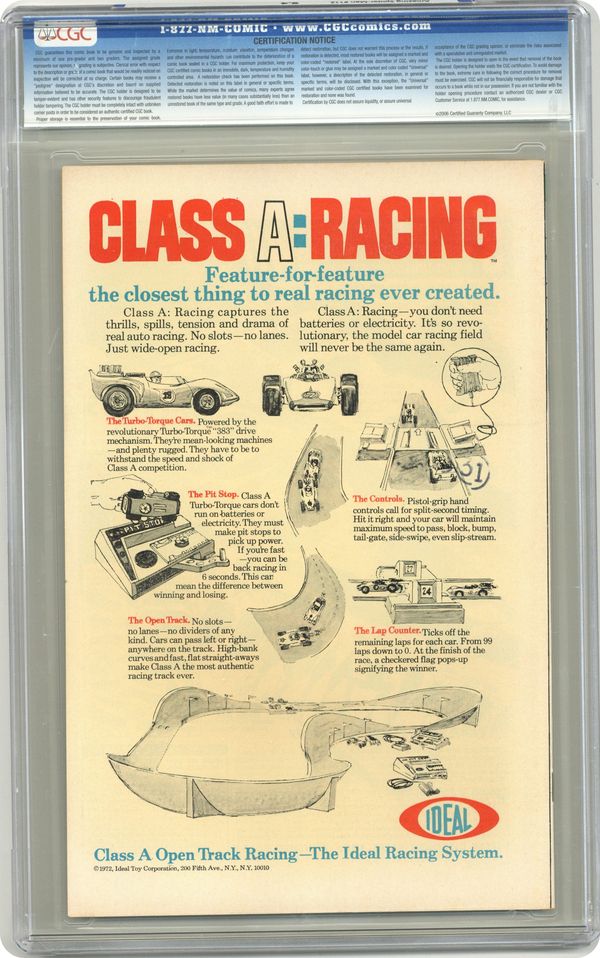 Ended May 6 2020 Winning Bid $100 "Spidey Cops Out!" Script by Gerry Conway. Pencils by John Romita. Inks by John Romita and Tony Mortellaro (backgrounds). Cover by John Romita. Peter Parker is desperately searching for his dear Aunt May! She has been missing for several days now, and her web-slinging nephew is worried sick. In fact, Spider-Man passes on a few crime-busting activities in order to find her. Unfortunately, the Daily Bugle gets wind of the wall-crawler's newfound indifference, and JJJ pounces! But Peter doesn't care as he continues his search. On the Lower East Side, the web-slinger's spider-sense goes off! Has Spider-Man found his aunt? Not unless May Parker has suddenly added four mechanical arms! Cameo appearances by the Gibbon, Harry Osborn, Betty Brant, Joe Robertson, Mary Jane Watson, Anna Watson, Flash Thompson, Gwen Stacy, and Dr. Octopus. (Notes: John Romita is credited as a co-plotter of the story. This issue was reprinted in Marvel Tales #91.) 36 pages. Cover price $0.20. Grade: CGC 9.4 explanation of grade Condition: Used (collectible)