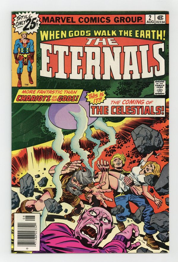 "The Celestials!" Written by Jack Kirby. Pencils by Jack Kirby. Inks by John Verpoorten. The gods are real and they live among us! Archeologist Doctor Damian and his daughter Margo, led by the enigmatic Ikaris, soon learn that they are not alone in this universe. But could the return of the space gods known as the Celestials possibly mean. Note: 1st appearance of Ajak and the Celestial Arishem the Judge. Cover price $0.25. Grade: FN 6.0 explanation of grade Condition: Used (collectible)