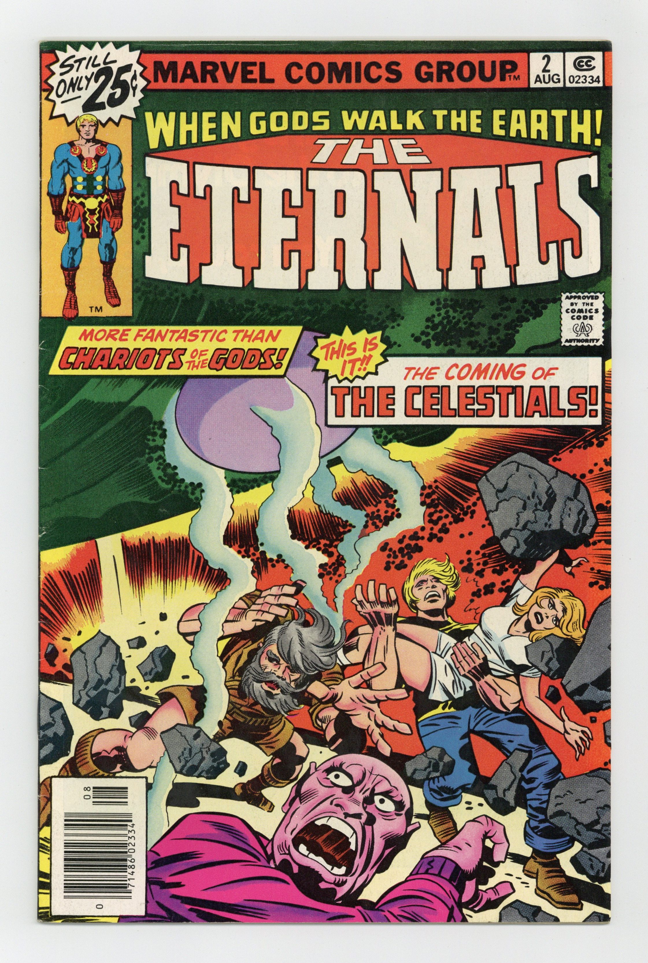 "The Celestials!" Written by Jack Kirby. Pencils by Jack Kirby. Inks by John Verpoorten. The gods are real and they live among us! Archeologist Doctor Damian and his daughter Margo, led by the enigmatic Ikaris, soon learn that they are not alone in this universe. But could the return of the space gods known as the Celestials possibly mean. Note: 1st appearance of Ajak and the Celestial Arishem the Judge. Cover price $0.25. Grade: VG/FN 5.0 explanation of grade Condition: Used (collectible)