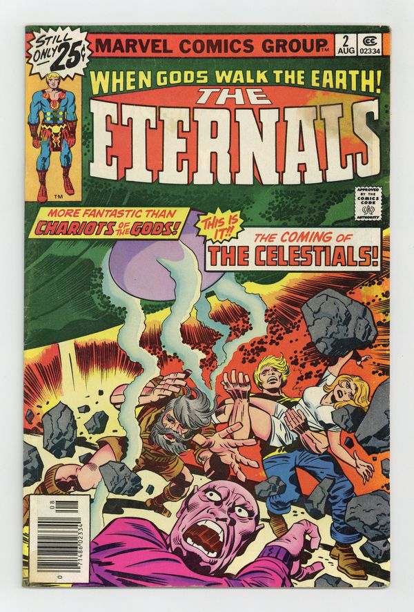 "The Celestials!" Written by Jack Kirby. Pencils by Jack Kirby. Inks by John Verpoorten. The gods are real and they live among us! Archeologist Doctor Damian and his daughter Margo, led by the enigmatic Ikaris, soon learn that they are not alone in this universe. But could the return of the space gods known as the Celestials possibly mean. Note: 1st appearance of Ajak and the Celestial Arishem the Judge. Cover price $0.25. Grade: VG 4.0 explanation of grade Condition: Used (collectible)
