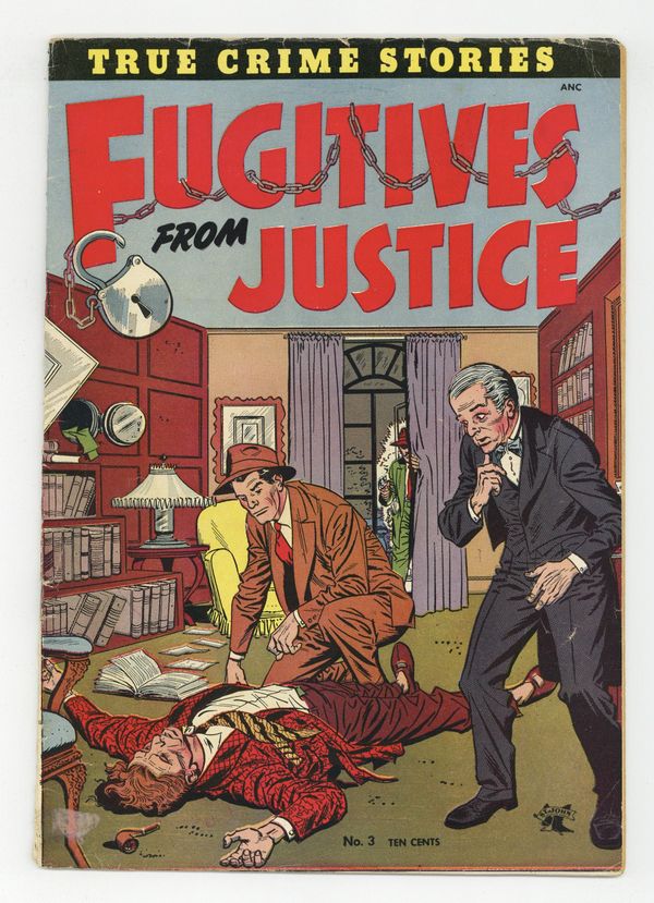 Cover by Frank Giacoia. Stories and art by George Tuska, Michael O'Malley, Edd Ashe and Walter Johnson. Pre-Code crime comics from St. John, featuring gunplay, betrayal, murder and just all-around bad people. The cops close in on Tony "The Human Cat" after his latest home invasion. In its original printing, the following line from the Human Cat's girlfriend was singled out by Fredric Wertham as "An invitation to learning" in the famous anti-comics tome Seduction of the Innocent: "Where ya goin' on a night like dis, Tony? Ya ain't gonna shoot anybody with dat rod, are ya?" Reporter Lawson Hunt stumbles on a gangland plan for murder by remote control, but now he must live to report it. High-class pickpockets Silk and Sandra fleece the crowd that has gathered to honor private eye Vic Flint. Crash-Dive of a Crime Career; Mr. Muscles Plays with Murder; Vic Flint: The Case of the Fabulous Silk-Hat Pickpocket; Buried Bullets Betray the Burglar; Murder by Remote Control. 32 pages, Full Color. Cover price $0.10. Grade: VG- 3.5 explanation of grade Condition: Used (collectible)