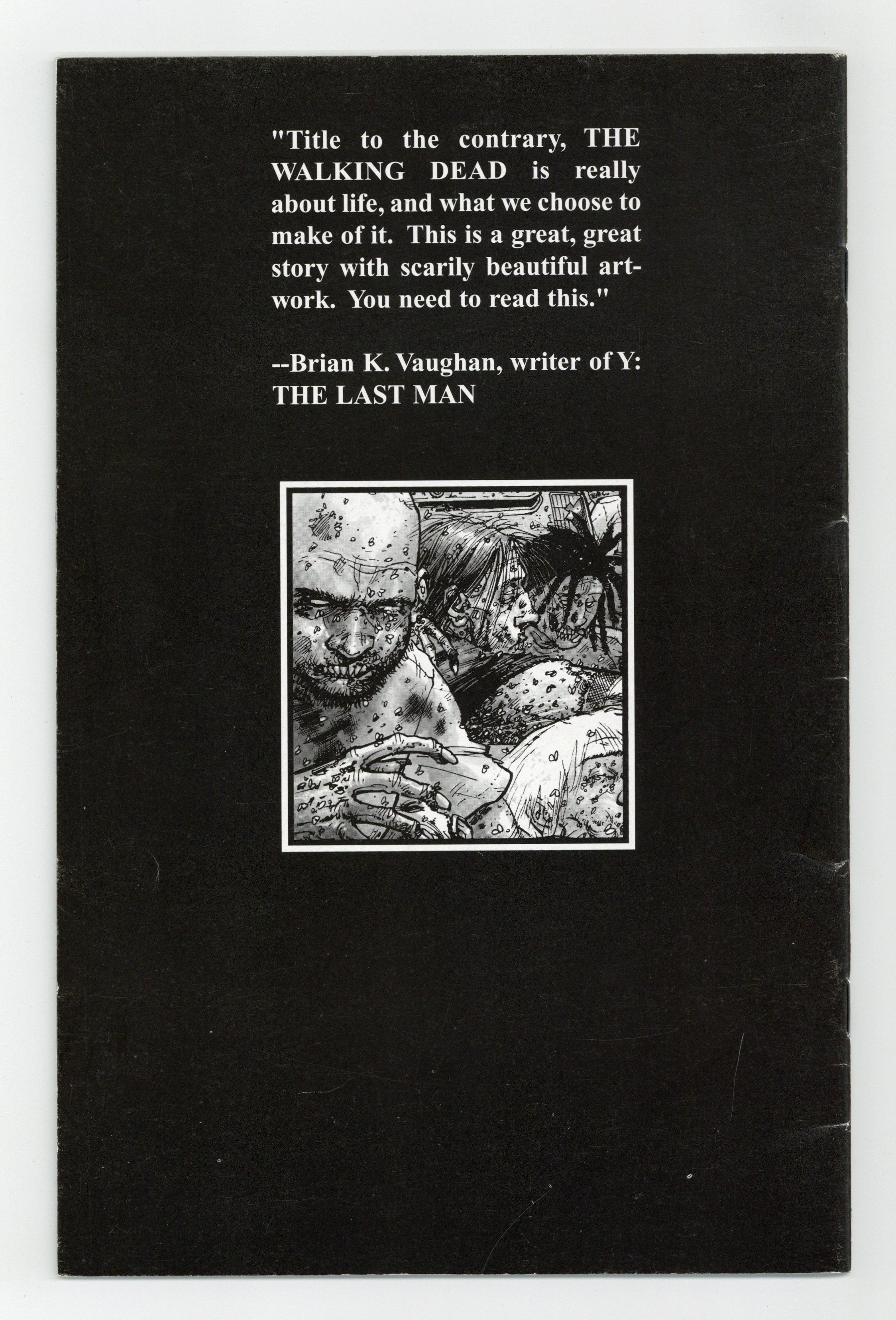 Ended May 6 2020 Winning Bid $68 Written by Robert Kirkman. Art and Cover by Tony Moore. THE CONCEPT: An epidemic of apocalyptic proportions has swept the globe, causing the dead to rise and feed on the living. In a matter of months society has crumbled: no government, no grocery stores, no mail delivery, no cable TV. In a world ruled by the dead, we are forced to finally begin living. Characters in this issue: Rick Grimes; Shane; Dale; Glenn; Jim; Lori; Carl. 32 pages, B&W (gray tones). MATURE READERS WARNING Cover price $2.95. Grade: FN- 5.5 explanation of grade Condition: Used (collectible)