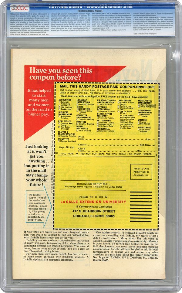 Ended May 21 2020 Winning Bid $96 "The Gentleman's Name is...Hulk!" Part 1 of 2. Guest-starring the Hulk. Script by Gerry Conway. Pencils by John Romita. Inks by John Romita and Tony Mortellaro (backgrounds). Cover by John Romita. The Amazing Spider-Man vs. the Incredible Hulk! Wow! But how did the two combatants meet in Canada of all places? A few days ago, a mysterious telegram arrived from Montreal for May Parker. At first Peter was going to show it to his aunt, however he changed his mind upon realizing the telegram could beconnected to Dr. Octopus! The web-slinger wants to go to Quebec to investigate, but he needs money for airfare. Luckily, Peter convinces J. Jonah Jameson to send him north of the border to photograph the Hulk (in a peaceful manner). But thanks to Thunderbolt Ross and the Canadian military, the Hulk is already on a rampage! And your friendly neighborhood Spider-Man has to stop him! Cameo appearances by Aunt May, Harry Osborn, Norman Osborn, Betty Brant, and Ned Leeds. (Notes: John Romita is credited as a co-plotter. Spider-Man and the Hulk previously battled in Amazing Spider-Man Annual #3.) 36 pages. Cover price $0.20. Grade: CGC 7.5 explanation of grade Condition: Used (collectible)