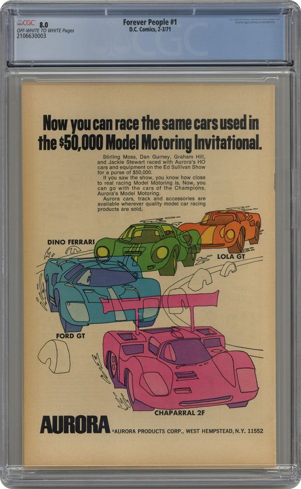 Ended May 7 2020 Winning Bid $185 1st full appearance of Darkseid (his 3rd appearance anywhere). Superman guest stars--Odd fact: DC didn't like Kirby's rendition of Superman in this issue, so they had another artist redraw Superman (in the standard Curt Swan fashion of the day) in every panel of the comic! Cover pencils by Jack Kirby, inks by Frank Giacoia; The Forever People come to earth and are greeted by Superman. A Visit with Jack Kirby by Marv Wolfman. 36 pgs. $0.15. Cover price $0.15. Grade: CGC 8.0 explanation of grade Condition: Used (collectible)
