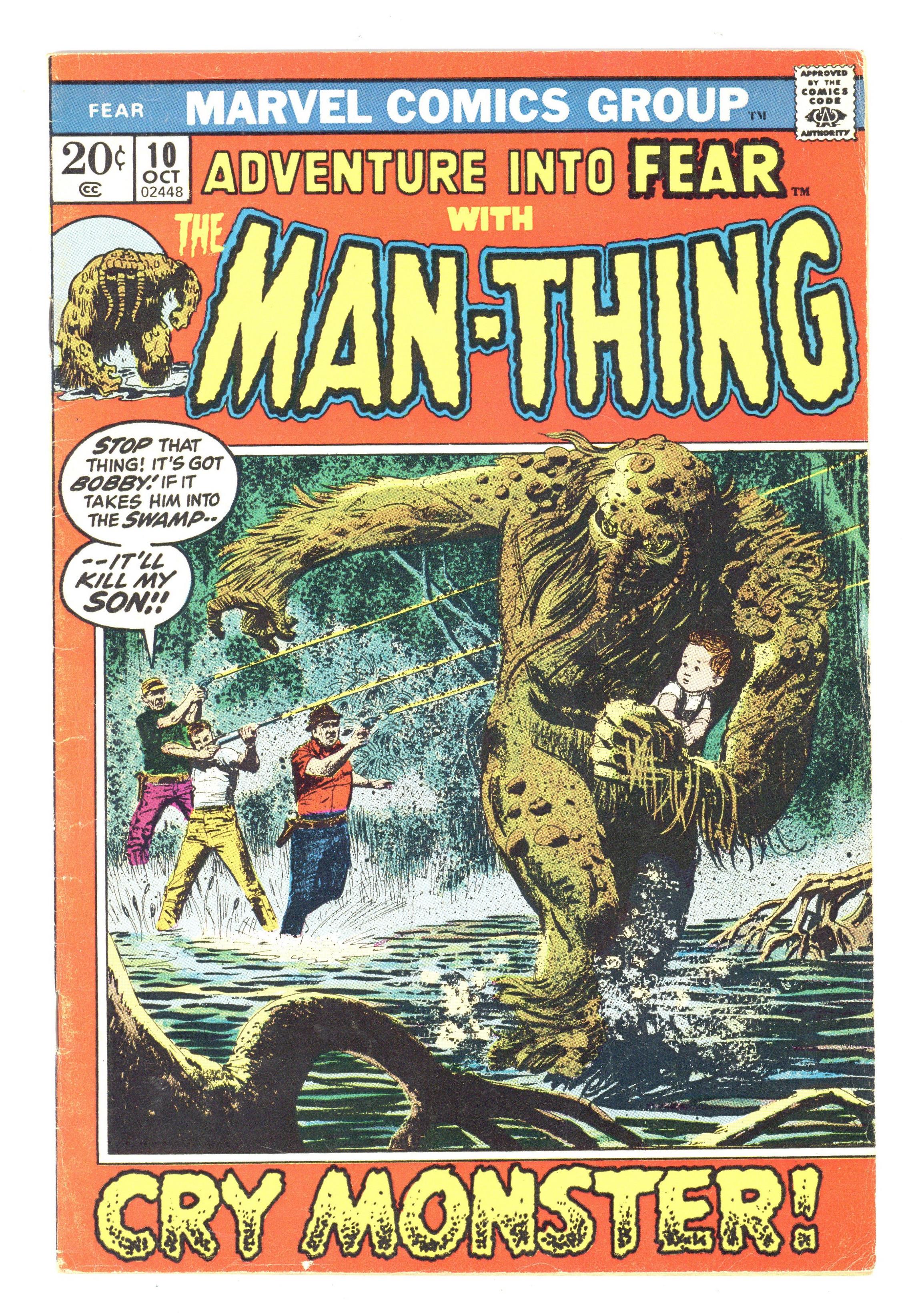 Cover art by Gray Morrow. "Man-Thing!", script by Gerry Conway, pencils by Howard Chaykin, inks by Gray Morrow; The Man-Thing discovers an infant being abandoned in the swamp, prompting it to seek retribution for the heinous act. "The Spell of the Sea Witch!" starring Iron Man, Thor and Captain America, script by Allyn Brodsky, pencils by Jack Katz (as "Jay Hawk"), inks by Bill Everett (as "Black Bill"). "There Is Something Strange About Mister Jones!", art by Don Heck; A thug hears a man say that he has a fortune in his locker. He attacks him and tries to make him lead him there. His victim is Davy Jones, and he shows the thief his locker by drowning him. 36 pgs., full color. Cover price $0.20. Grade: VG 4.0 explanation of grade Condition: Used (collectible)
