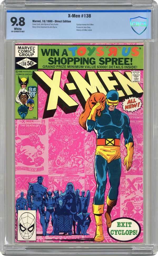 Ended Oct 16 2020 Winning Bid $105 Direct Edition. "Elegy!" Story by Chris Claremont and John Byrne. Art by John Byrne and Terry Austin. In the tragic aftermath of last issue's stunning events, the X-Men bury one of their own. Scott relives the history of X-Men and reflects. Overcome with grief, Cyclops decides to leave the X-Men. The team is forced to push on without their heart, Jean Grey, and their soul, Scott Summers. As one member leaves a new member shows up. Featuring flashback appearances by Magneto and the Brotherhood of Evil Mutants, Ka-Zar, the Stranger, Juggernaut, Master Mold and the Sentinels, Count Nefaria, Plant Man, Eel, Porcupine, the Living Laser, the Super-Adaptoid, Mimic, Cobalt Man, Spider-Man, Doctor Strange, Mole Man, Tyrannus, Grotesk, Mesmero, the Living Monolith, Sauron, Sunfire, Krakoa, the Ani-Men, Black Tom Cassidy, the Shi'ar Imperial Guard, Alpha Flight, Garokk the Petrified Man, Moses Magnum, Arcade, Jason Wyngarde/Mastermind, Proteus, the Hellfire Club, and the Dark Phoenix. 36 pgs. Cover price $0.50. Grade: CBCS 9.8 explanation of grade Condition: Used (collectible)