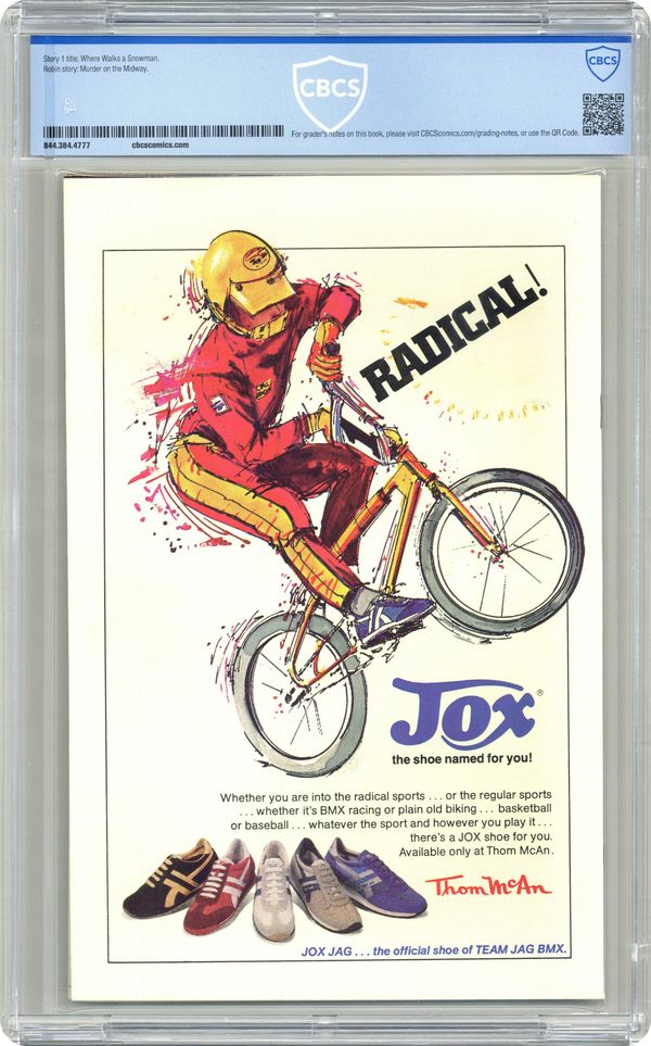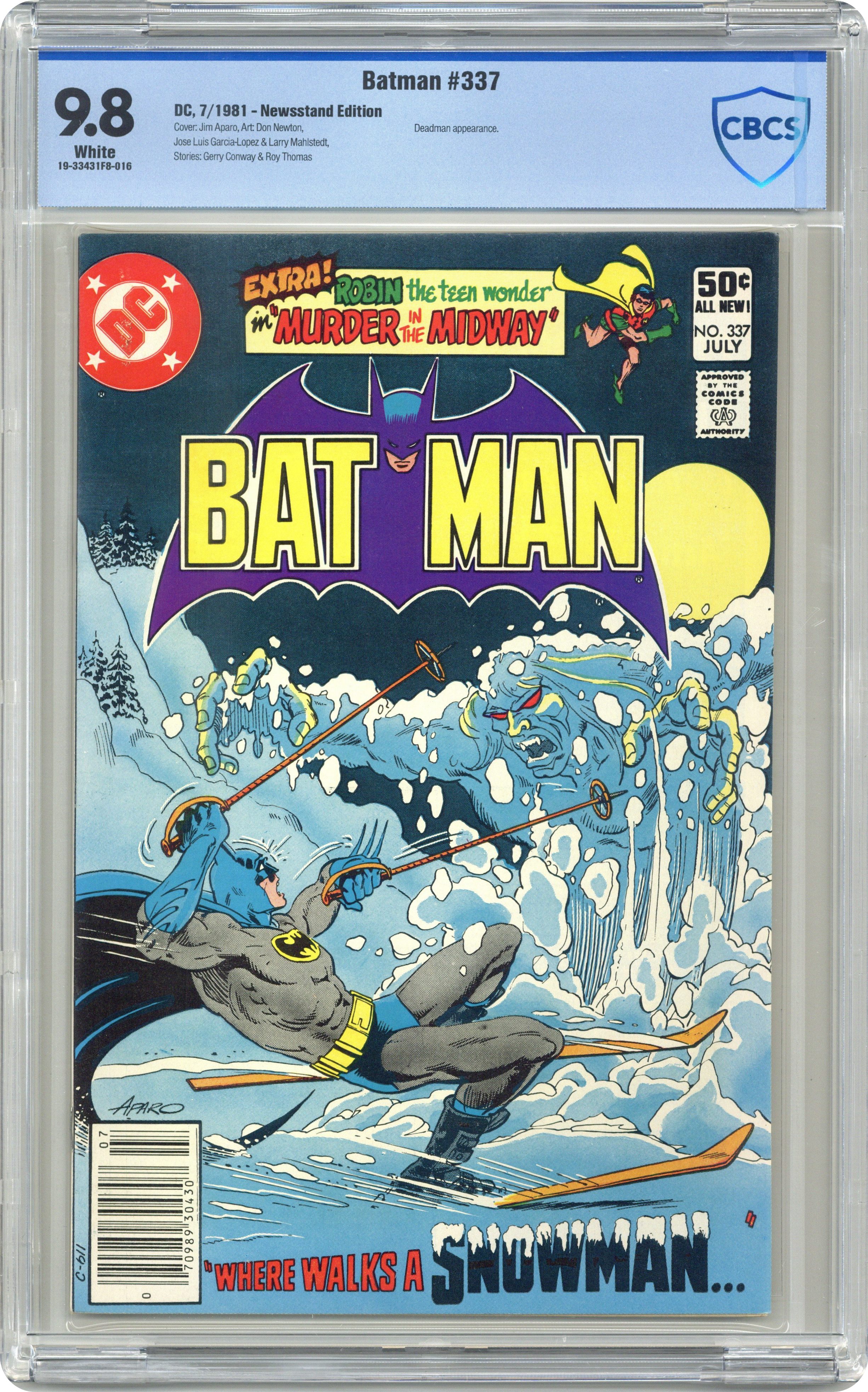 Ended Nov 10 2020 Winning Bid $53 Direct Edition. Batman tries to uncover the true identity of the villainous Snowman terrorizing the city in "Where Walks A Snowman." Script by Gerry Conway. Plot assist by Roy Thomas. Art by Jose Luis Garcia-Lopez & Steve Mitchell. Back-up tale: Robin in "Murder on the Midway." Continued next issue. Written by Gerry Conway. Art by Don Newton & Larry Mahlstedt. Cover by Jim Aparo. 36 Pages, Full Color. Cover price $0.50. Grade: CBCS 9.8 explanation of grade Condition: Used (collectible)