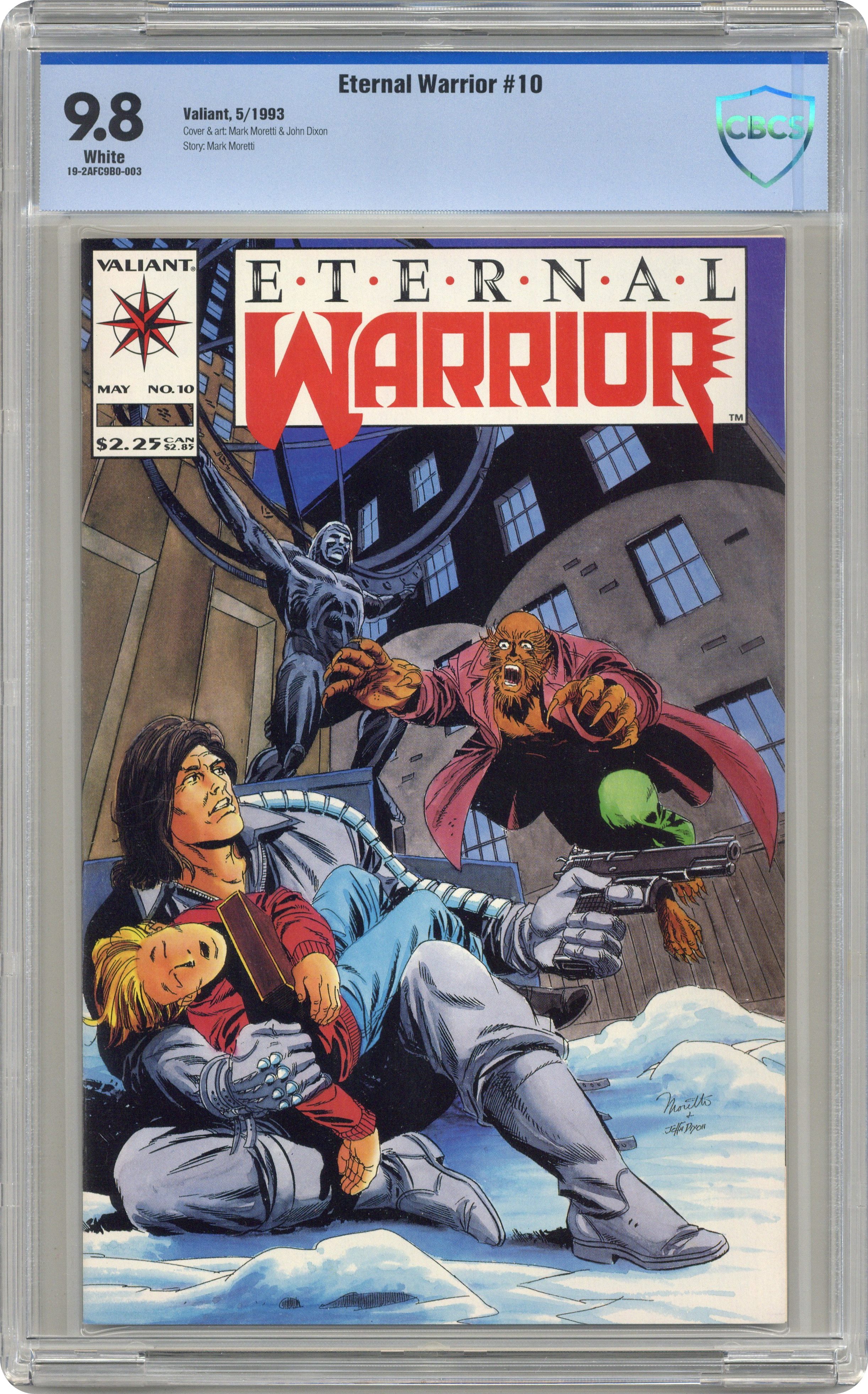 Ended Aug 13 2024 Winning Bid $2 Injured while retrieving the Book of Geomancer, Gilad is aided by a mother and her son and then has to help and protect them from the danger that he brought with him in "Child's Play." Script by Mark Moretti and art by Mark Moretti & John Dixon. Cover price $2.25. Grade: CBCS 9.8 explanation of grade Condition: Used (collectible)