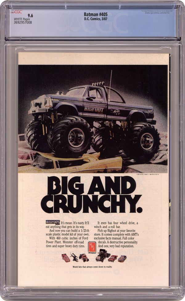 Ended Jan 4 2021 Winning Bid $51 First Printing. Direct Edition. Batman Year One, Chapter Two: "War Is Declared". Part 2 of 4, continued from the previous issue. Story continues next issue. Bruce Wayne dons the cape and cowl for the first time to take the fight to the criminal element, while James Gordon stirs up trouble within his own department. Script by Frank Miller, art by David Mazzucchelli. Harvey Dent appears as Assistant District Attorney. Mazzucchelli cover. 1st printing. NOTE: Most issues from 397-432 were reprinted in 1989 and sold in multipacks. These 2nd and 3rd prints have back cover ads dated 1989. 36 Pages, Full Color. Cover price $0.75. Grade: CGC 9.6 explanation of grade Condition: Used (collectible)