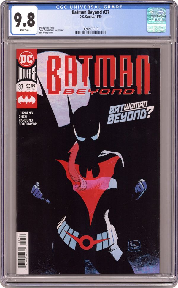 Ended Jan 4 2021 Winning Bid $90 Written by Dan Jurgens. Art by Sean Chen and Sean Parsons. Cover by Lee Weeks. In the wake of his fateful showdown with False Face and the Splitt, the Batman of tomorrow has gone missing! With the Caped Crusader AWOL and Neo-Gotham facing the threat of one of the deadliest villains it's ever known, a new hero is needed! Bruce Wayne will turn to friends both old and new in order to keep his city safe, but that won't be enough. Fortunately, a new and mysterious protector will arrive on the scene, taking flight to save the city! 32 pages, full color. Rated T Cover price $3.99. Grade: CGC 9.8 explanation of grade Condition: Used (collectible)