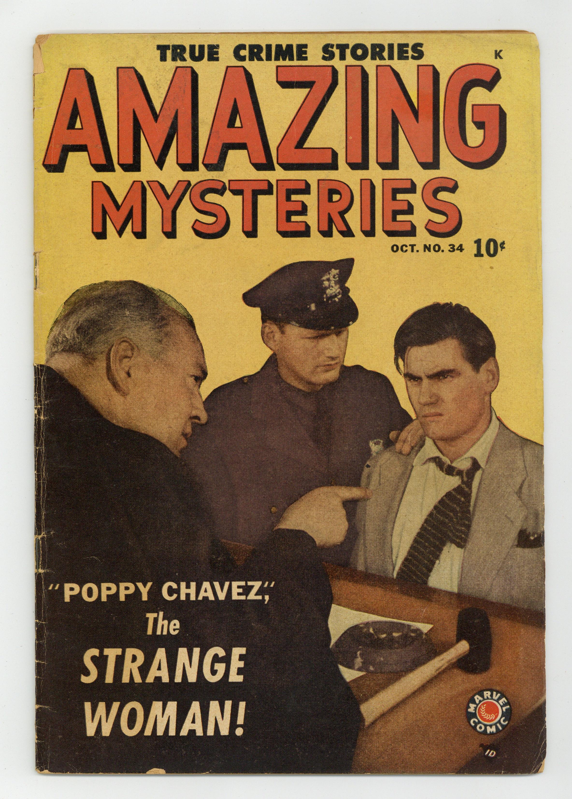 Photo Cover. Edited by Stan Lee. Stories by unknown. Art by Mike Becker and unknown. True crime stories. In this issue: "Poppy Chavez The Strange Woman!" with art by Mike Becker; 1-page article "Wanted By the F.B.I."; "The Kissing Buccaneer"; 2-page text story "The Rivals"; and "My Fatal Mistake"! 32 pages, full color. Cover price $0.10. Grade: GD+ 2.5 explanation of grade Condition: Used (collectible)