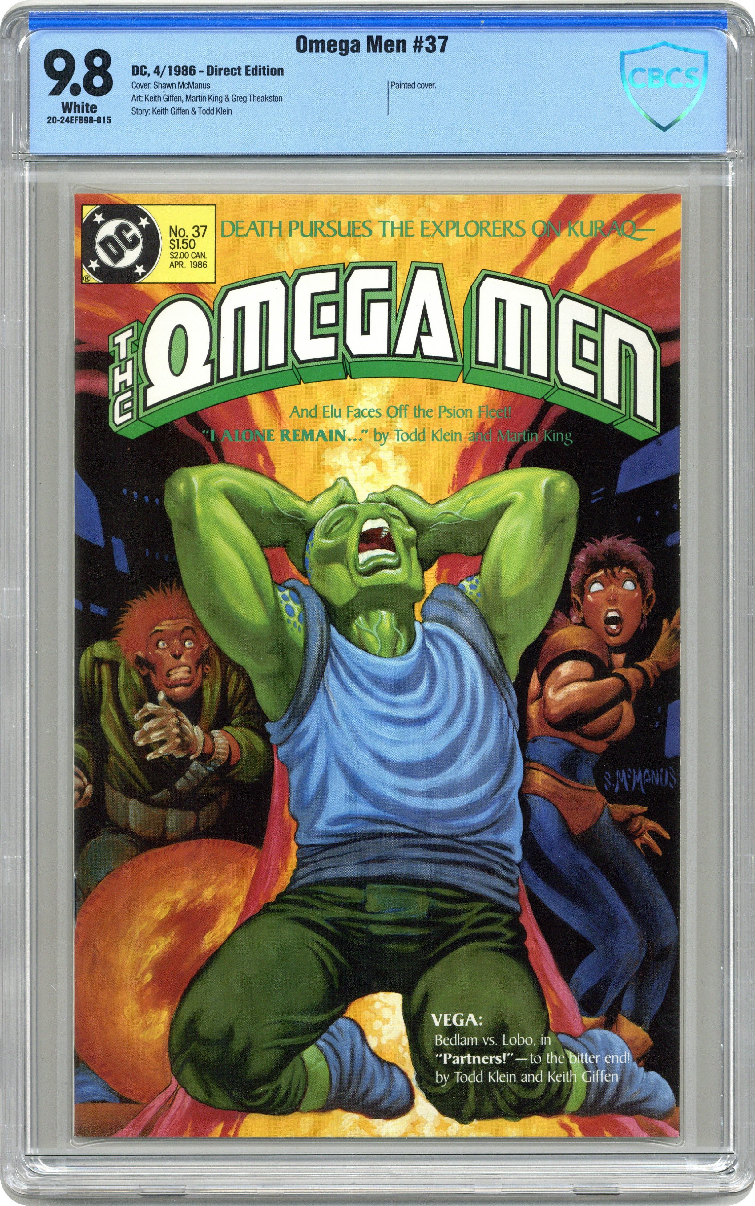 Ended Oct 30 2020 Winning Bid $19 "I Alone Remain." The Psions plan to destroy the Omega Men's starship once it reaches Euphorix. Primus separates from Artin. Script by Todd Klein, pencils by Martin King, inks by Greg Theakston. "Partners." Lobo is under contract against Bedlam, his former partner. 1st solo Lobo story. Script by Todd Klein, plot and art by Keith Giffen. Cover by Shawn McManus. Cover price $1.25. Grade: CBCS 9.8 explanation of grade Condition: Used (collectible)