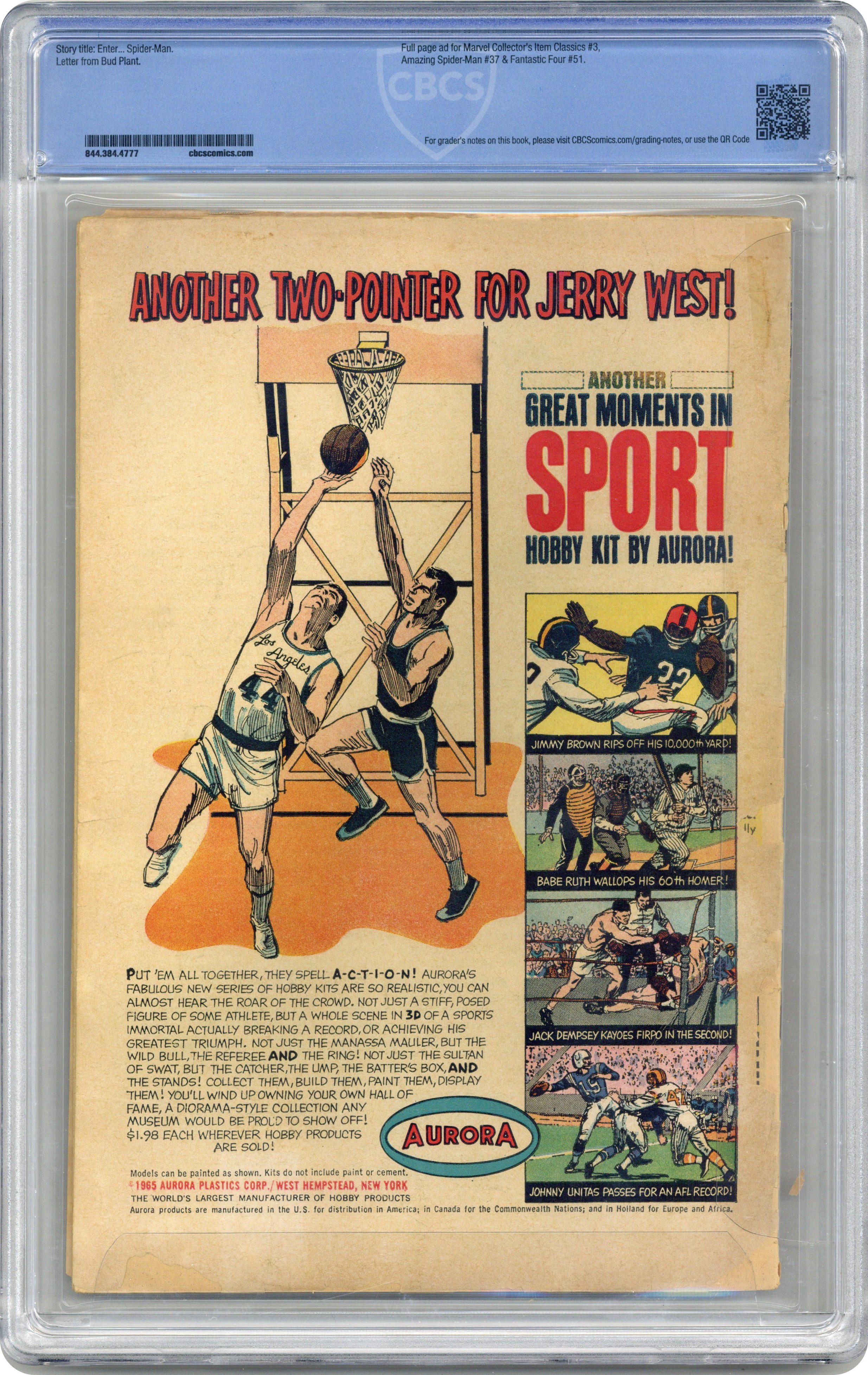 Ended Dec 14 2020 Winning Bid $90 Cover pencils by John Romita, inks by Frank Giacoia. Spider-Man guest stars in Enter Spider-Man!, script by Stan Lee, pencils by John Romita Sr., inks by Frank Giacoia (as "Frank Ray"); The Masked Marauder comes up with a plan to pit Spidey and DD against each other while he makes off with an experimental engine; First appearance of the Masked Marauder. Letter to the editor from comics retailer Bud Plant. 36 pgs. 36 pgs. Cover price $0.12. Cover price $0.12. Grade: CBCS 1.5 explanation of grade Condition: Used (collectible)