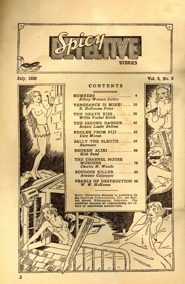 "Vengeance is Mine!" a short story by E. Hoffman Price, and "The Second Dagger" a short story by Robert Leslie Bellem.