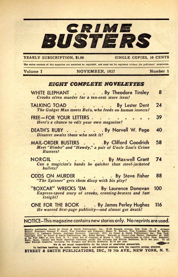 Published Nov 1937 by Street & Smith.VG 4.0