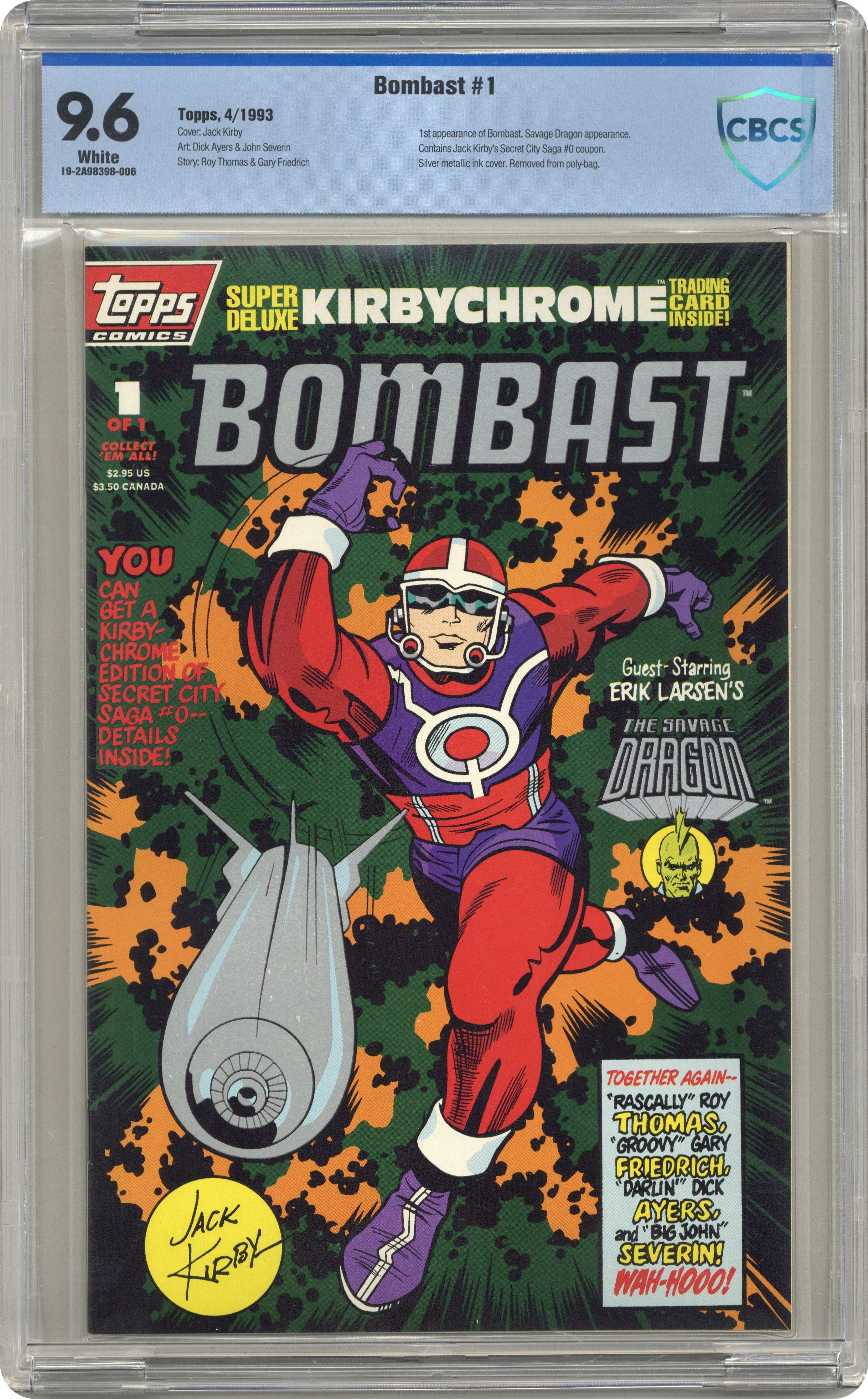 Ended Jun 24 2024 Winning Bid $11 Bombast Lives! - Written by "Rascally" Roy Thomas (plot) & "Groovy" Gary Friedrich (script). Art by "Darlin'" Dick Ayers & "Big John" Severin. Cover pencils by Jack "King" Kirby. Special Image Comics guest star, the Savage Dragon! An earthquake shakes Chicago, and the first of Secret City's superheroes awakens! He's the hot-tempered human catapult called Bombast. He can hurl objects at incredible speed and with uncanny accuracy. This modern world baffles him. And worse, he has lost the memory of his all-important mission to save modern mankind from the doom that destroyed his civilization 15,000 years ago! Meanwhile, Chicago police officer Savage Dragon is out to place Bombast under arrest! Also featuring appearances by Nightglider and Captain Glory. Plus: "Bullpen Bios" of John Severin, Dick Ayers and Gary Friedrich, including photos of the three. And: Polybagged with a Kirbychrome trading card. 32 pages, full color. Cover price $2.95. Grade: CBCS 9.6 explanation of grade Condition: Used (collectible)