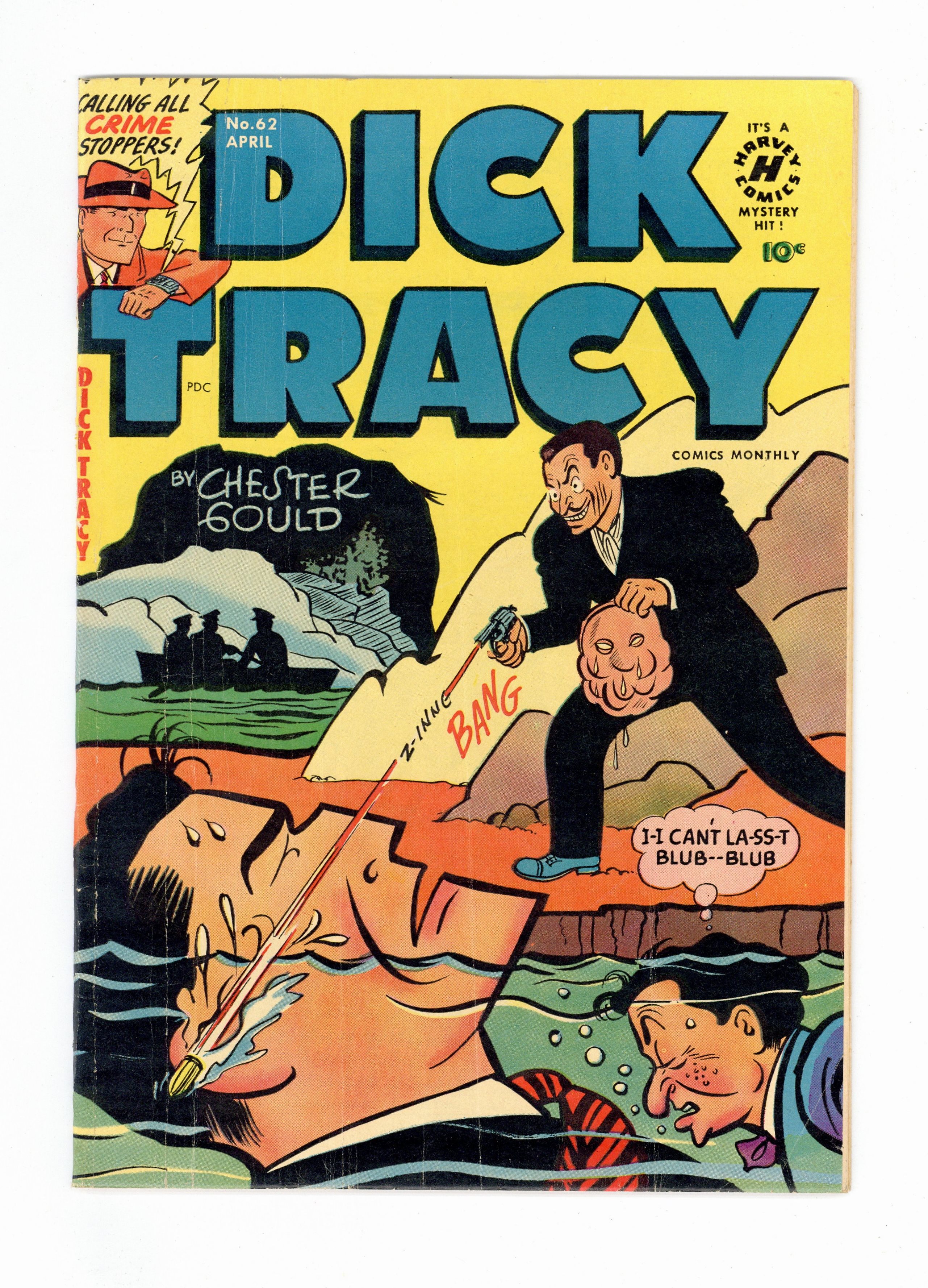 Cover art by Joe Simon (as Chester Gould). "Dick Tracy and the Case of the Murderer's Mask," script by Chester Gould, art by Joe Simon (splash panel) and Chester Gould; After being rescued from drowning, Tracy and Sam use the teleguard to help them track Sketch Paree; Using Spike Dyke as bait, they trap Paree before he can kill anyone else with his diabolical mask. Space Squadron ad. "Dick Tracy and the Case of the White Rat Robberies," script by Chester Gould, art by Joe Simon (splash panel) and Chester Gould; Mugg the dog witnesses a hit-and-run and helps Tracy and Catchem find a kid lost in the tunnels under the streets; They are later notified of a snatch-and-grab robber who uses white rats to distract store owners and patrons. "A Chance in a Million" text story; A crook tries to rob a deaf couple. Dick Tracy Comics Monthly house ad. Untitled Girl Friday story; Myra deduces who killed a young man over a gambling debt. "The Locality of Murder" text story; James Stanley confronts a murderer who staged a phony car crash. Minit Mystery Starring the Count; Boris investigates the murder of a hipster. 36 Pages, Full Color. Cover price $0.10. Grade: VG- 3.5 explanation of grade Condition: Used (collectible)