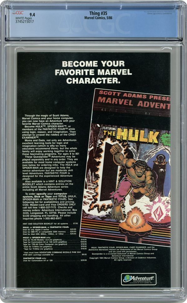 Thing (1983 1st Series Marvel) 35 CGC 9.4