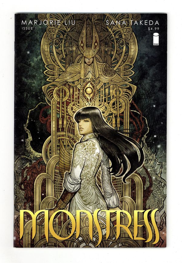 Written by Marjorie M. Liu. Art and Cover by Sana Takeda. Steampunk meets Kaiju in this original fantasy epic for mature readers, as young Maika risks everything to control her psychic link with a monster of tremendous power, placing her in the center of a devastating war between human and otherworldly forces. 64 pages, full color. Rated M Cover price $4.99. Grade: FN 6.0 explanation of grade Condition: Used (collectible)