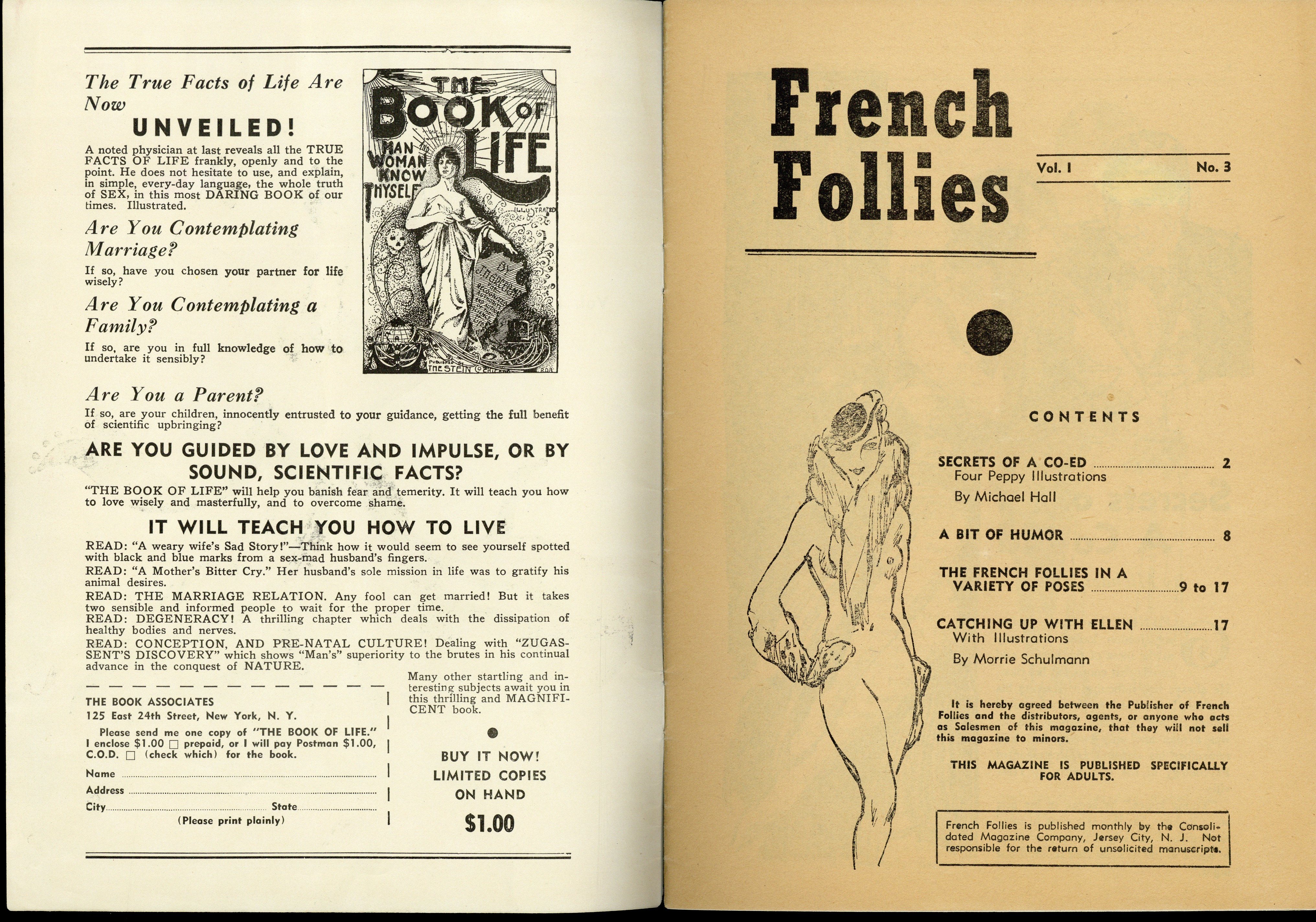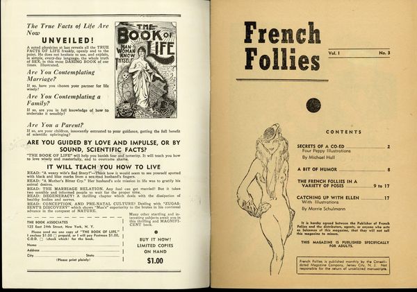 Vol. 1 #3 - undated, assuming late 1939 or early 1940s. Cover art previously used previously on Peppy Tales Vol. 1 #5 and Paris Nights Vol. 13 #9. Besides fiction, this issue also features eight pages of pinups on glossy paper. 6 3/4-in. x 9 12-in., 24 pages, B&W. Mature readers. Cover price $0.25. Grade: VG/FN 5.0 explanation of grade Condition: Used (collectible)