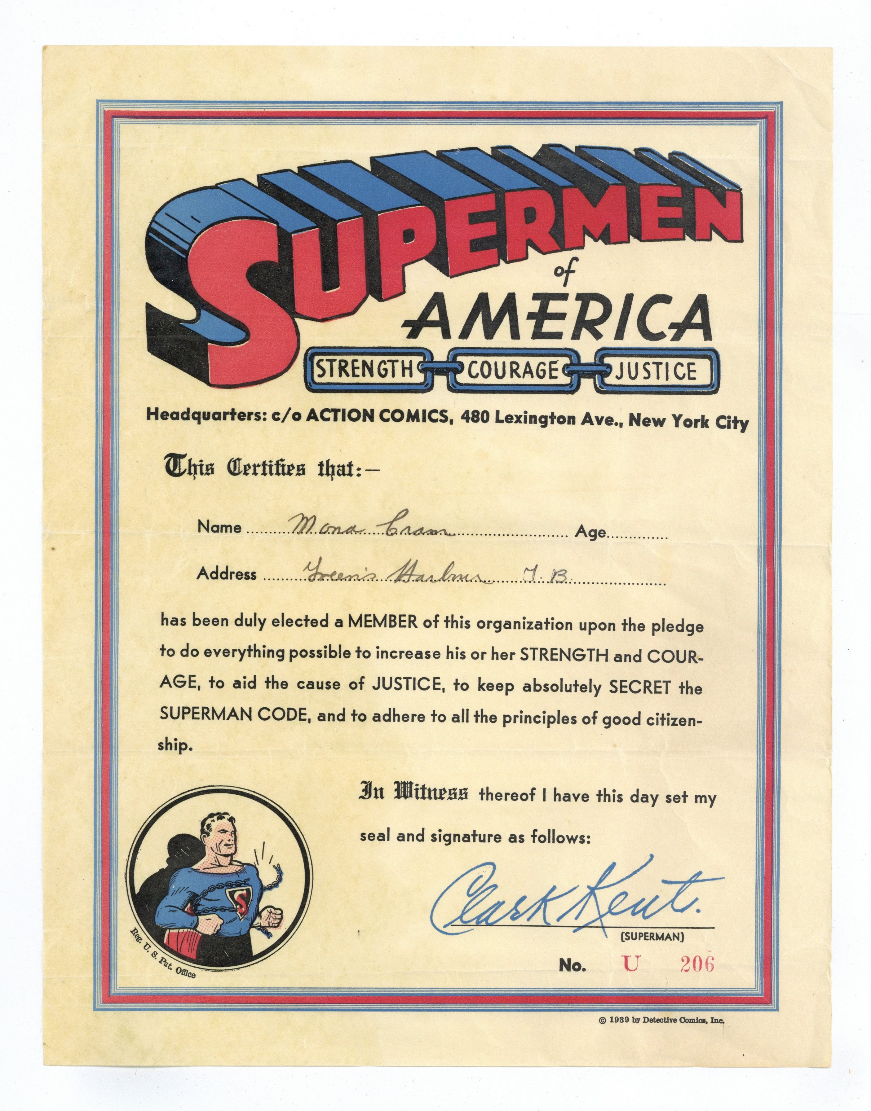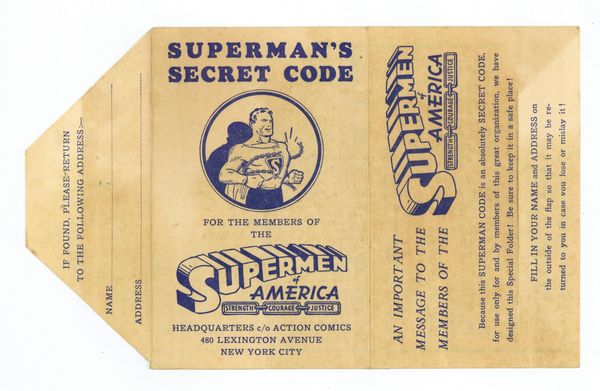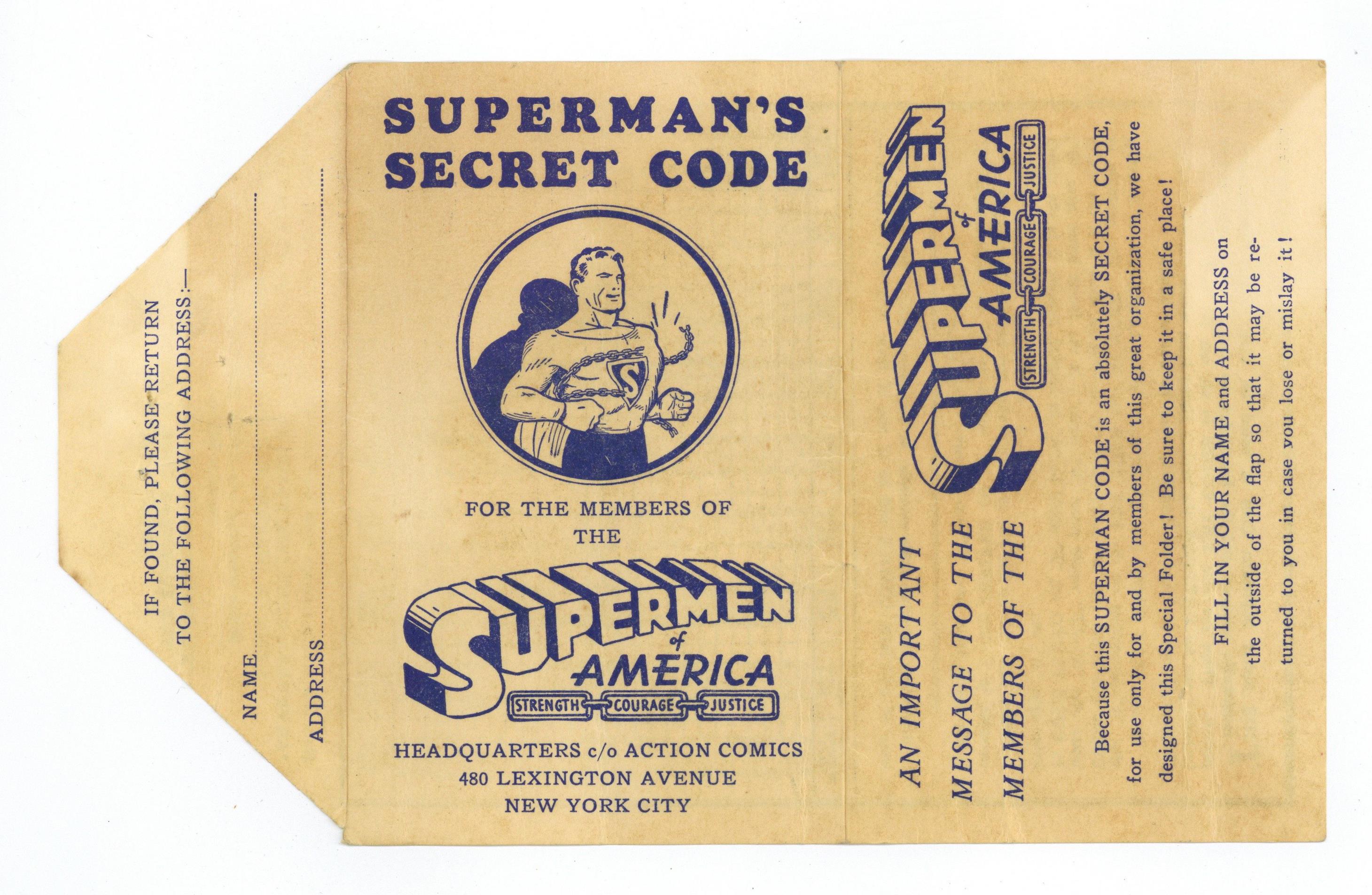 - Supermen of America Membership Kit (Partial). Includes the membership certificate and Superman's Secret Code booklet.