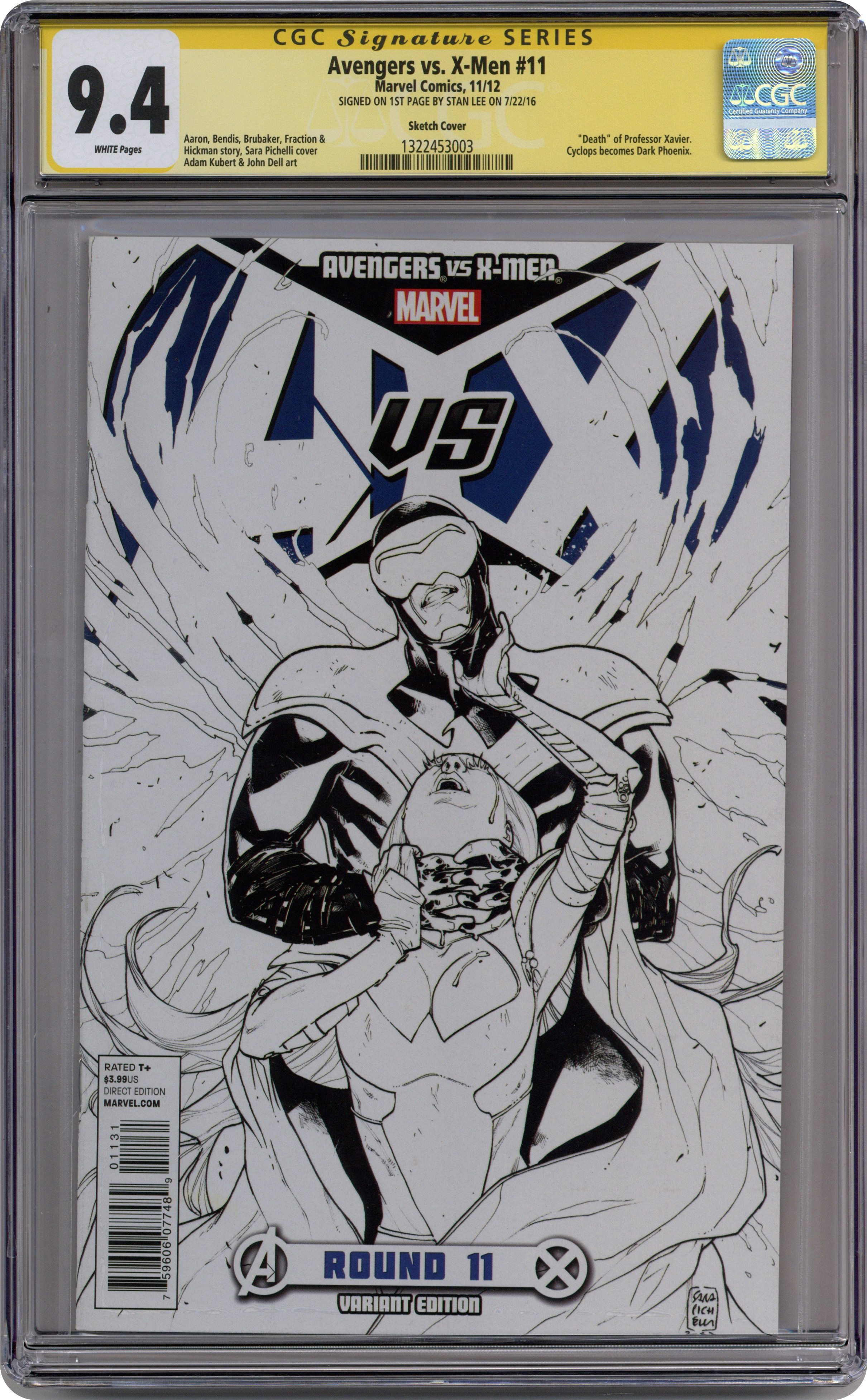 Limited 1 for 200 Variant Cover by Sara Pichelli. (W) Ed Brubaker. (W) Brian Michael Bendis. The final month of AVX opens with the first of two extra-sized issues! Fatality! Cover price $3.99. Grade: CGC 9.4 explanation of grade Condition: Used (collectible)