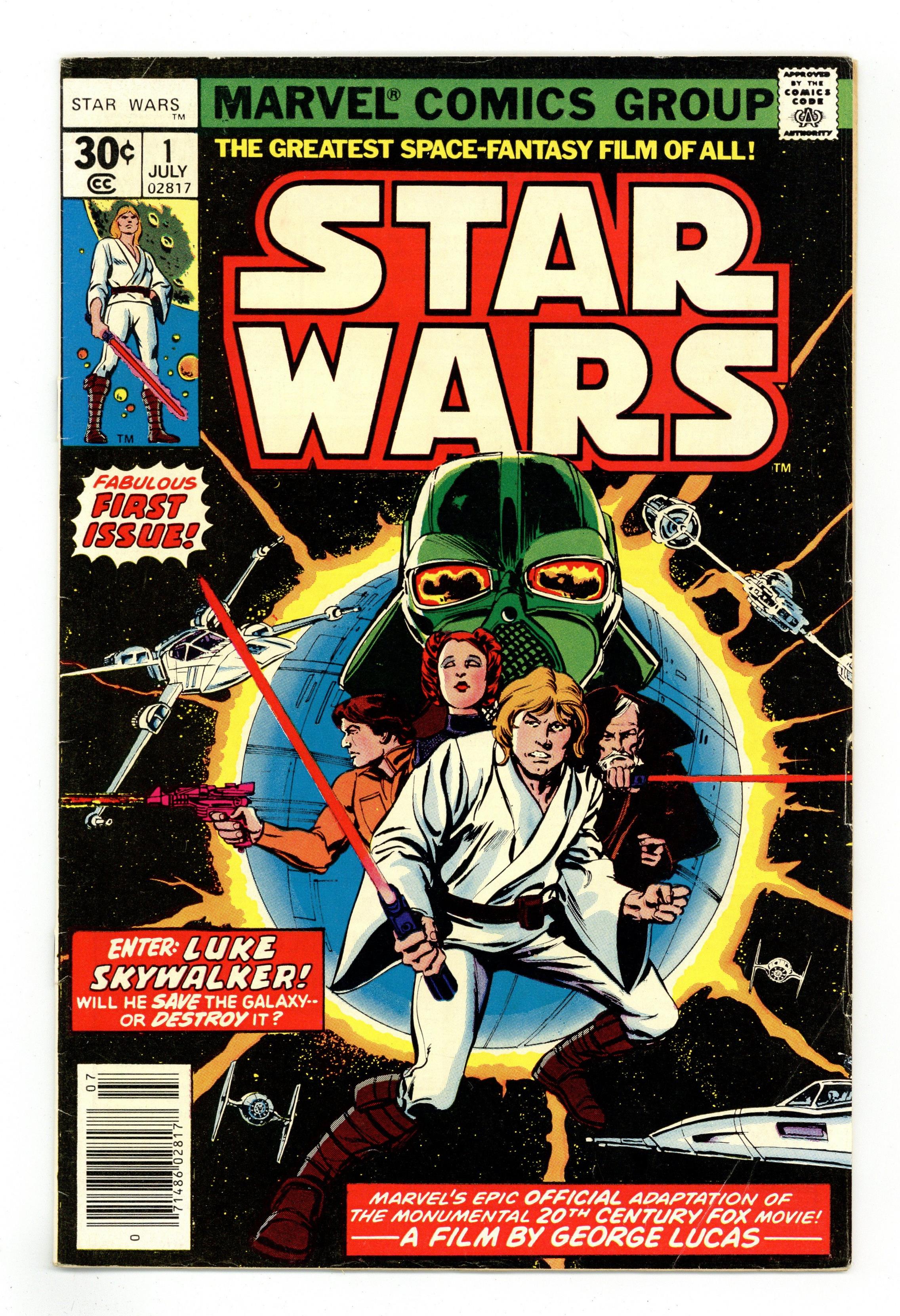 A Long time ago, in a galaxy far, far away...the galaxy is engrossed in an intergalactic civil war. A small band of freedom fighters led by Princess Leia opposes the evil Galactic Empire and steals the plans to their most destructive weapon, the Death Star. Darth Vader, the most feared name in the galaxy, will stop at nothing to recover those stolen plans and the location of the Rebel's secret base of operations. Now, it's up to farm boy Luke Skywalker and a motley band of heroes to save the Princess and the galaxy from the darkness that has engulfed it. Cover price $0.30. Grade: VG 4.0 explanation of grade Condition: Used (collectible)If you add this item to your want list, we will email you when it becomes available.