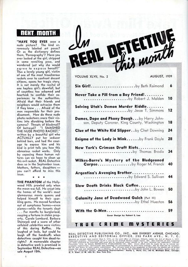 Published Aug 1939 by Real Detective Tales Inc..FN- 5.5