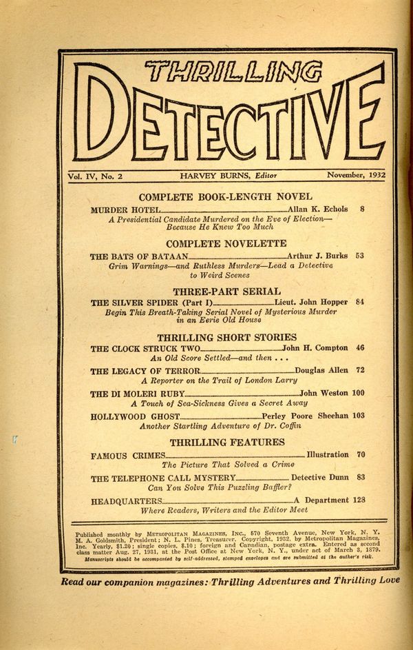 Volume 4, Issue 2 - November, 1932. 6.75" x 9.75", 132 pages, B&W. Cover price $0.10. Grade: GD 2.0 explanation of grade Condition: Used (collectible)
